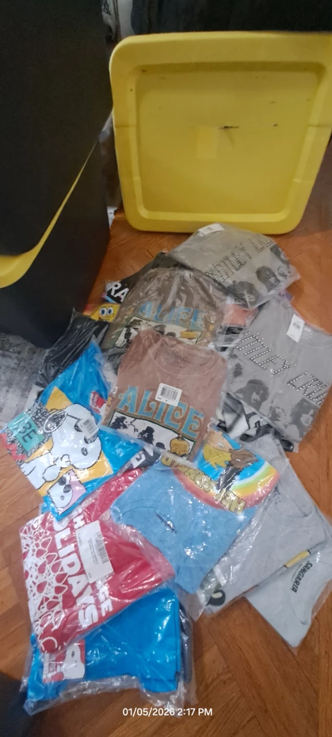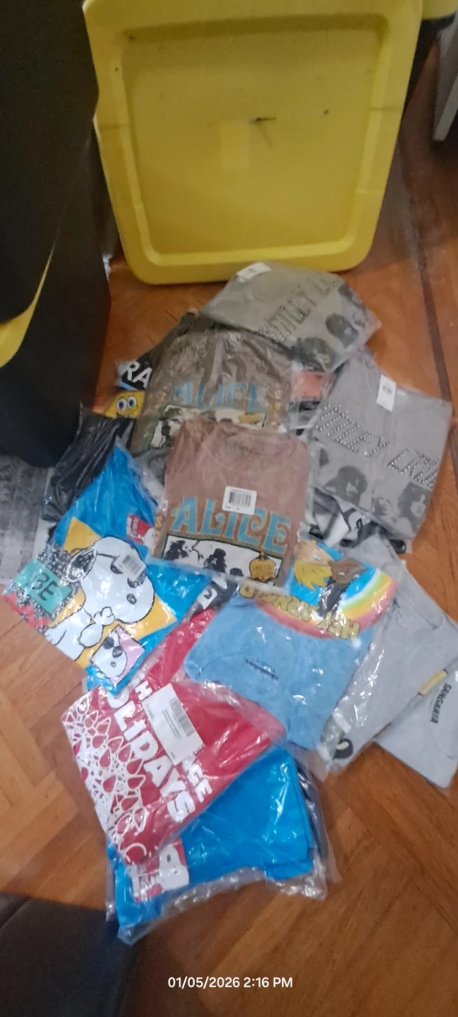 I have a collection of assorted graphic t-shirts for sale. They come in various colors and designs. Perfect for casual wear!....over 40 tee shirts and if u resell jump on it..