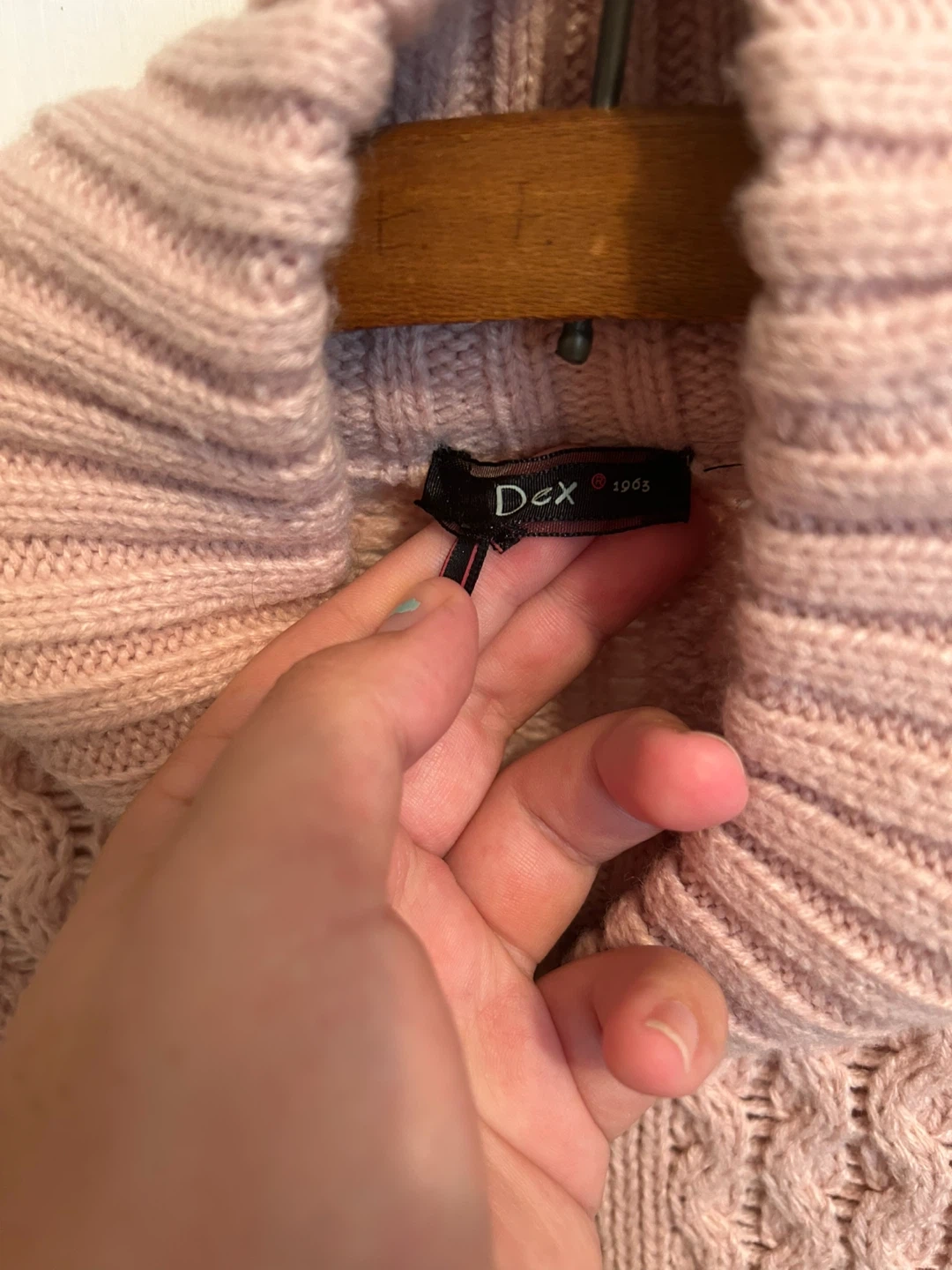 Dex brand. Pullover high neck knit sweater with side zipper (works). Dusty pink colour. Size medium. Like new condition $15 Pickup between kincardine & ripley or I can arrange delivery in port Elgin-Owen sound, walkerton-Durham, wingham-listowel-kw/cambridge, goderich-bayfield, Woodstock & Arthur-Orangeville-Newmarket-Lindsay-Peterborough AREAS.