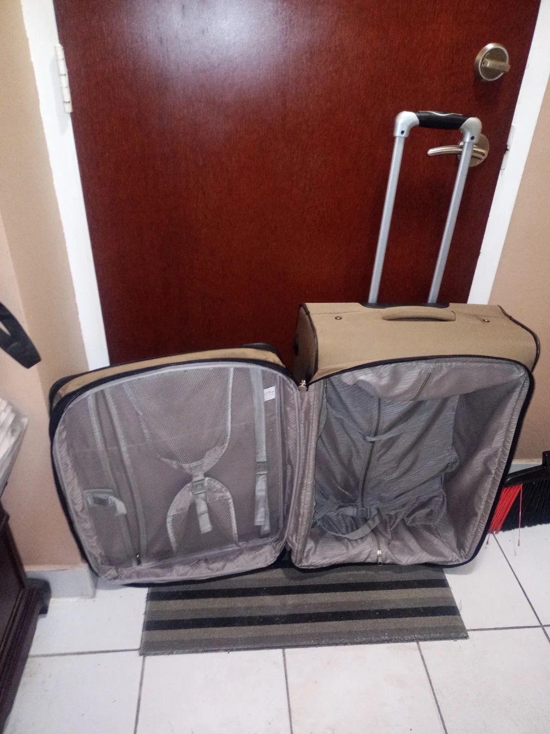 In good condition. Clean. All zippers, straps, wheels, and extendable handle work. See all pictures provided. Overall Measurements are: