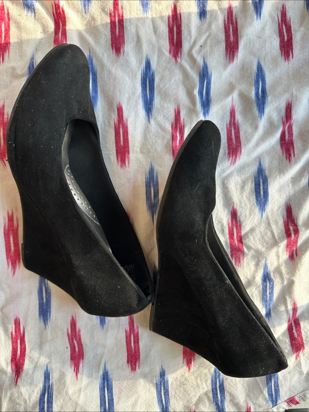 131Selling a pair of Dexflex Comfort wedge heel shoes in black! They're a size 8 and have a comfort insole. Perfect for everyday wear or a night out. From the outsole, you will notice that it has been worn very very rarely.