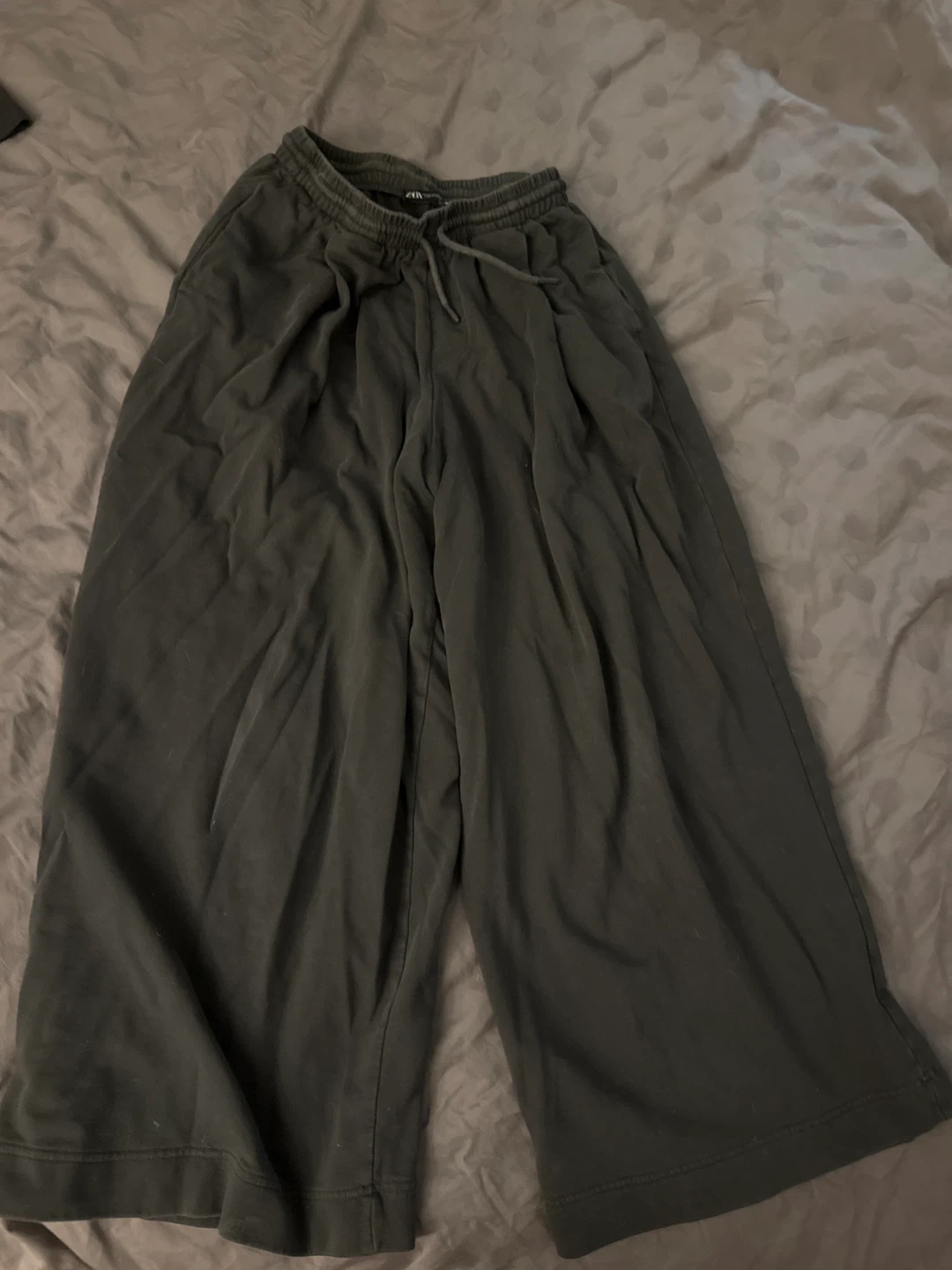 Comfortable dark grey wide leg sweatpants from Zara. Elastic waistband with drawstring. Size XS. Very stretchy.