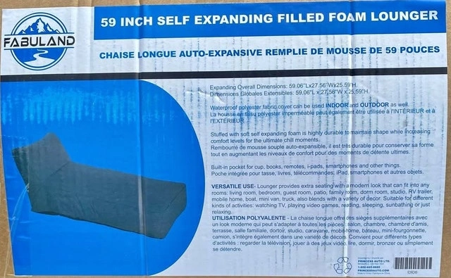 Brand New Sealed in Box. This comfy lounger offers you a capacity of 440 lb for stress-free relaxation. It’s made from polyurethane foam with a polyester cover and EVA backing. Waterproof polyester fabric cover can be used INDOOR and OUTDOOR as well. Stuffed with soft self expanding foam is highly durable to maintain shape while increasing comfort levels for the ultimate chill moments. Built-in pocket for cup, books, remotes, i-pads, smartphones and other things. Expanding Overall Dimensions: 59.06"Lx27,56" W×25.59