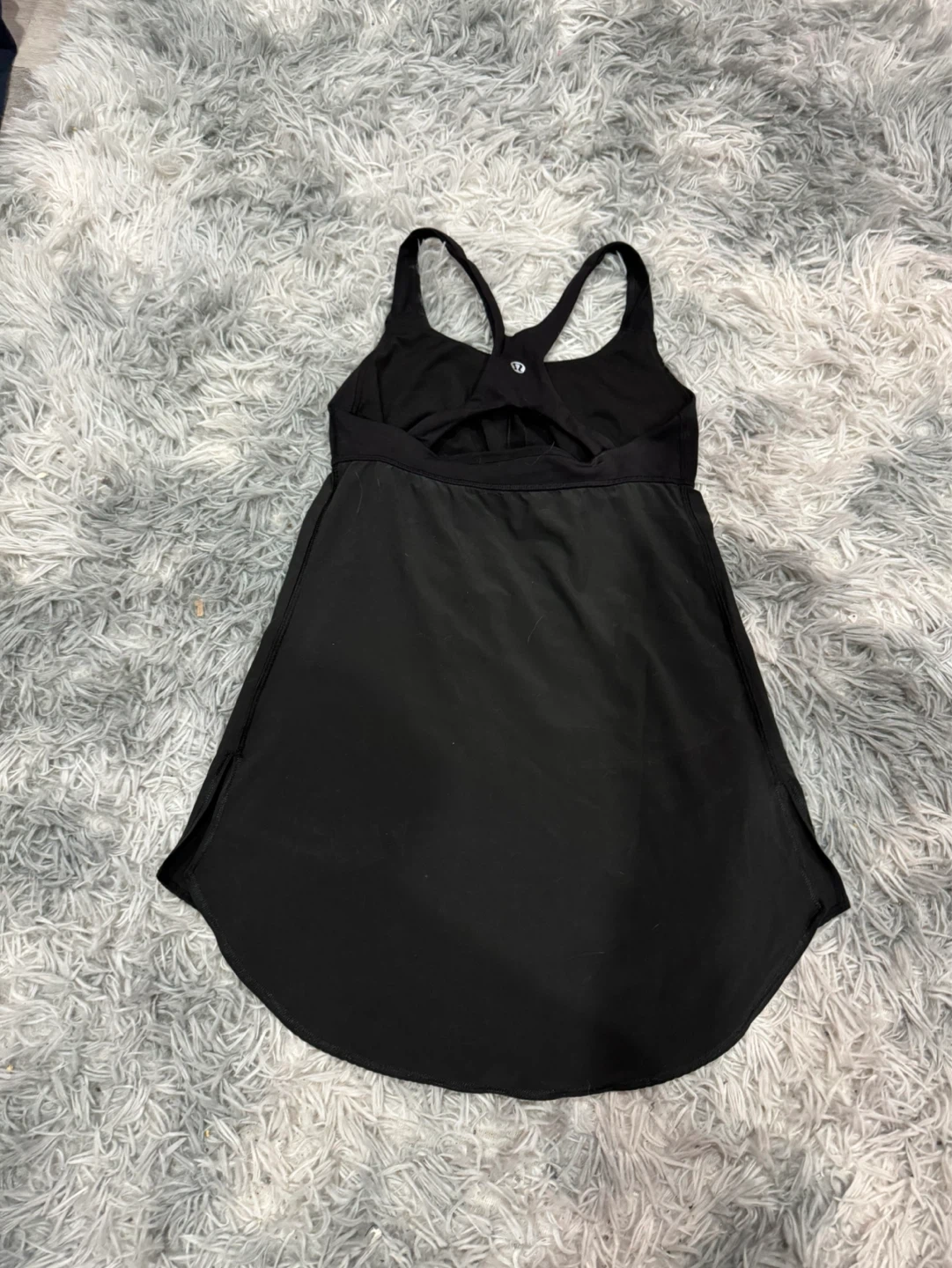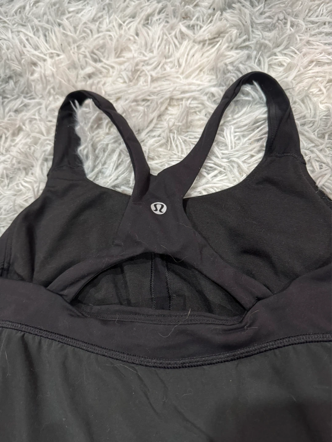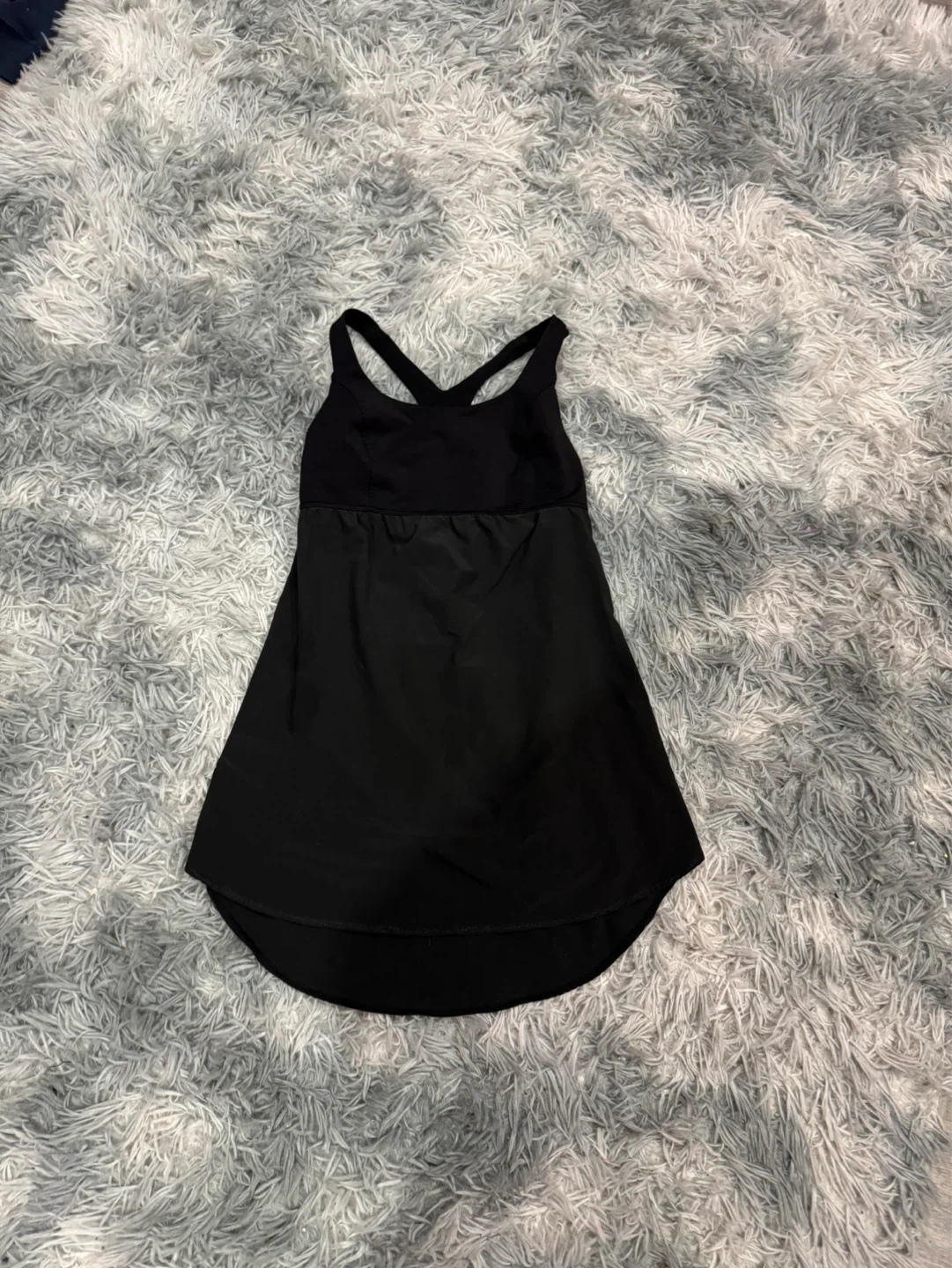 Lululemon black tank top with a built-in bra. It's a size 4 and made with breathable fabric. Perfect for your next workout!