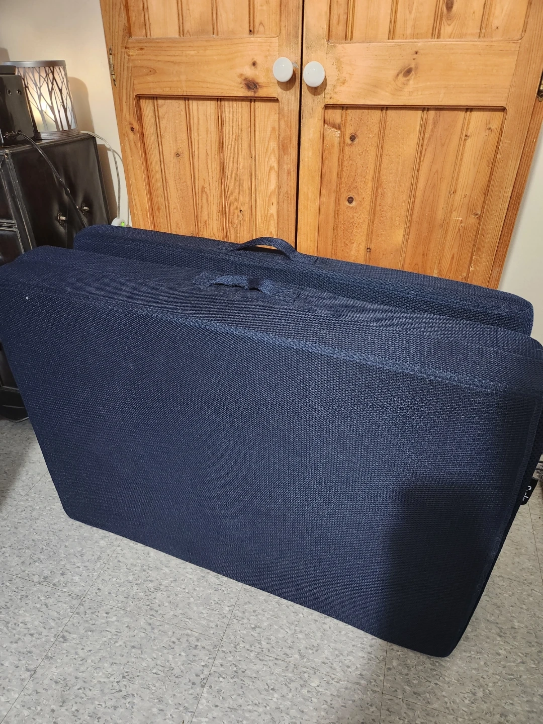 NEW SEALY THICK TWIN I BELIEVE, FOLDABLE TRANSPORTABLE BED VERY COMFY. Not to heavy to carry.