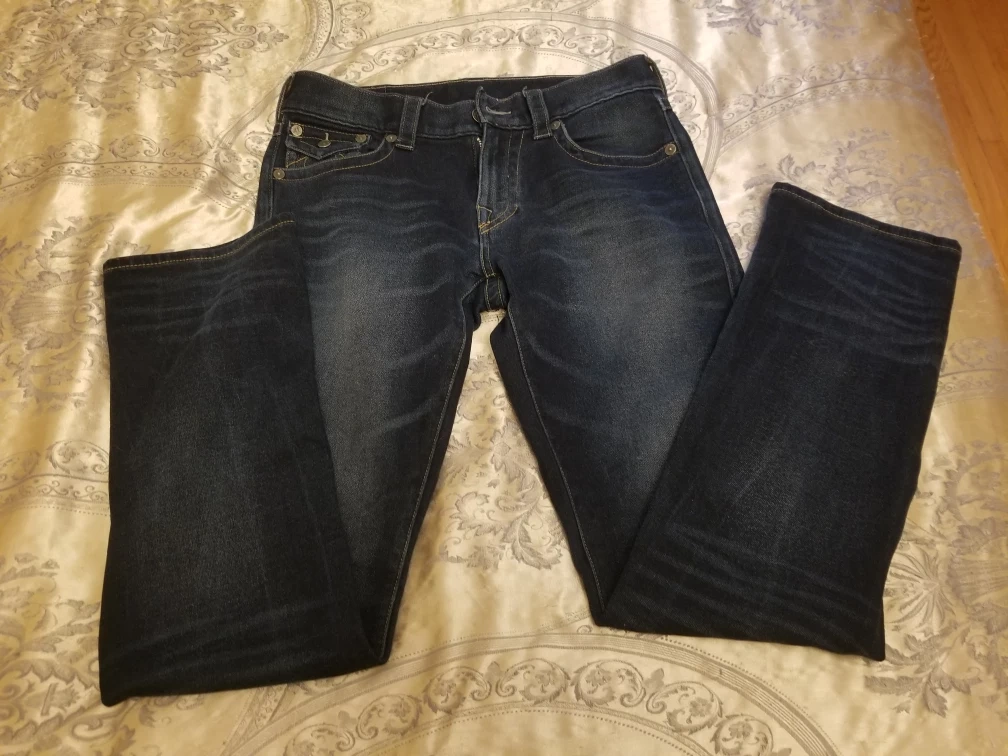 Selling a pair of True Religion jeans in great condition! The size is 30, perfect for anyone looking for a stylish and comfortable fit. These jeans feature the iconic True Religion horseshoe logo on the back pocket. They're a classic addition to any wardrobe!