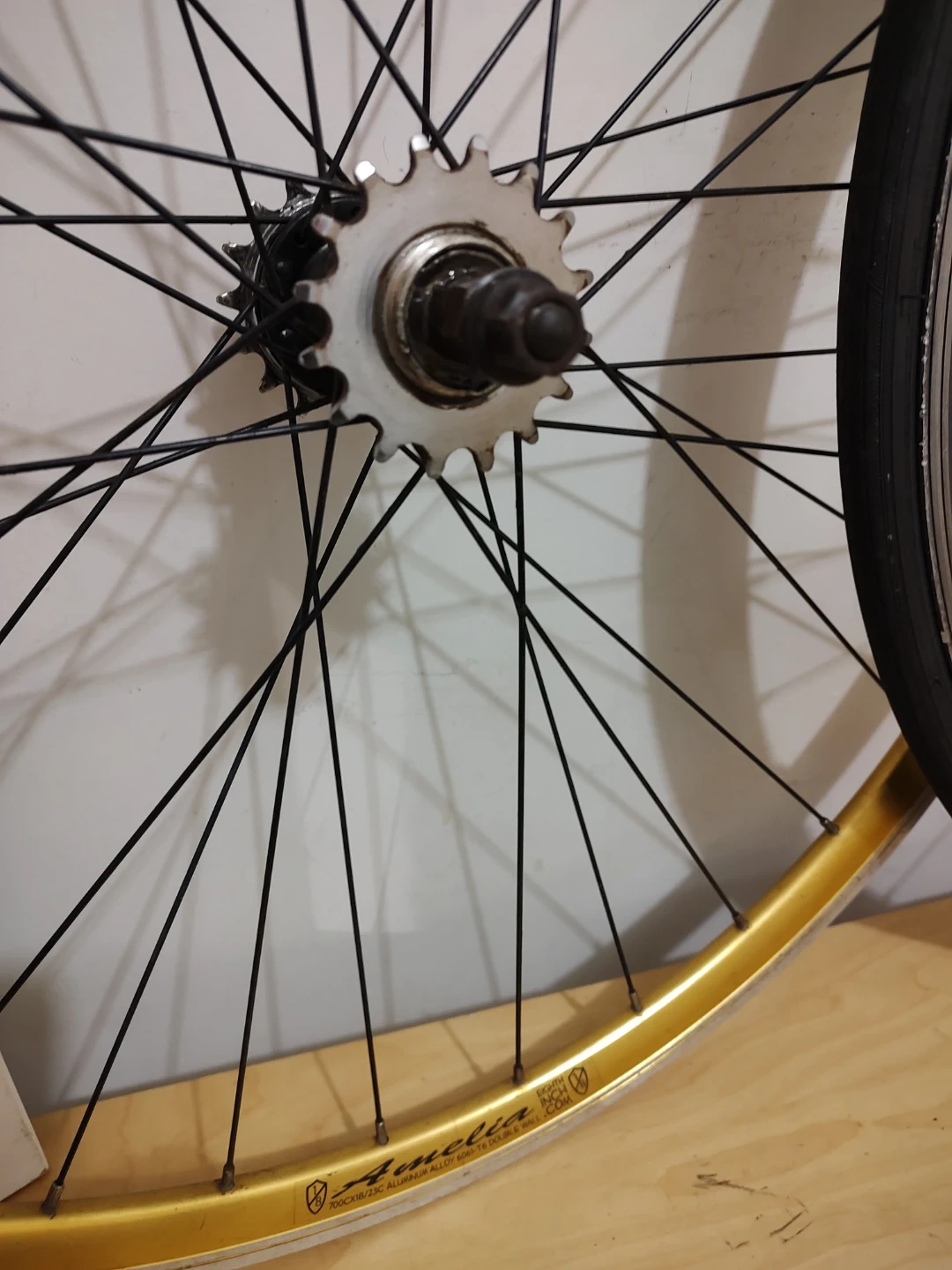 For sale is Amelia gold anodized, flip flop, double wall, aluminum alloy, 30mm deep rear rim with sealed hub and stainless steel spokes that can be used for the single speed, or fixed gear bike.