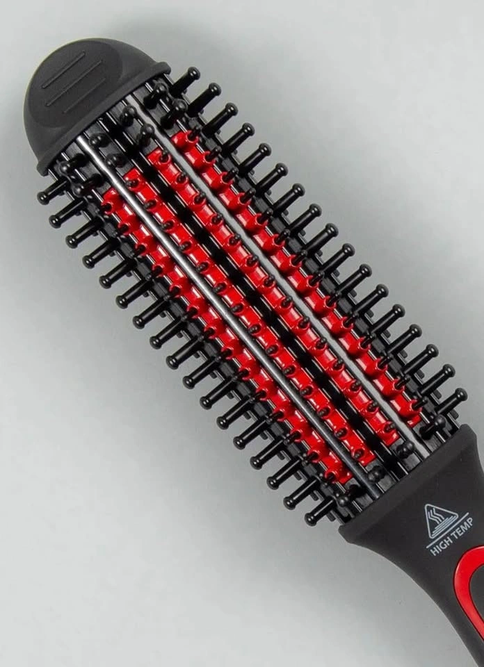 BNIB 1 1/4" retractable thermal curling brush. 4 rows of round bristles to secure hair while styling. 5 temp settings from 300F-410F. Extra long swivel cord. Ceramic barrel locks in moisture and increases shine. Easy grip handle.