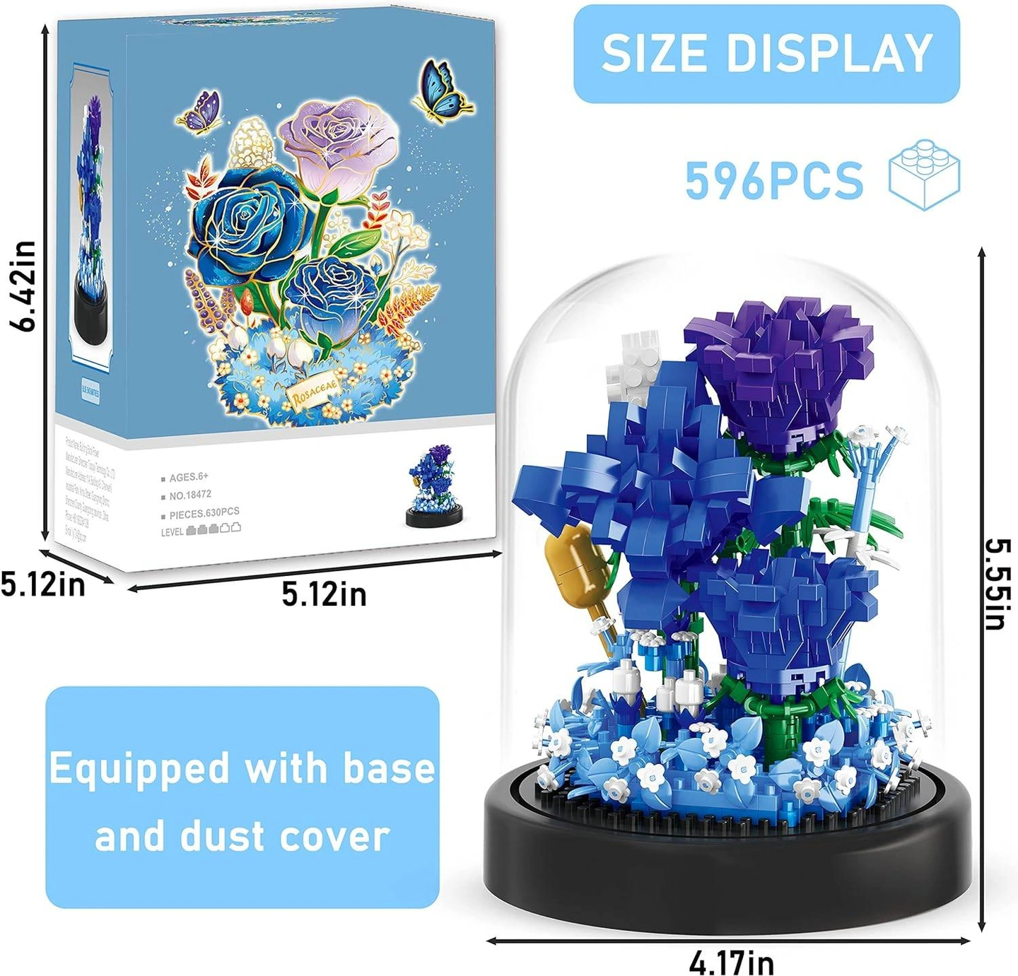QLT QIAOLETONG Flower Bouquet Building Set, 630 PCS Blue Rose Mini Building Blocks Kit for Adults, Flowers Botanical Collection for Home Decor, Mother's Day for Her Mom Women Wife Girlfriend
