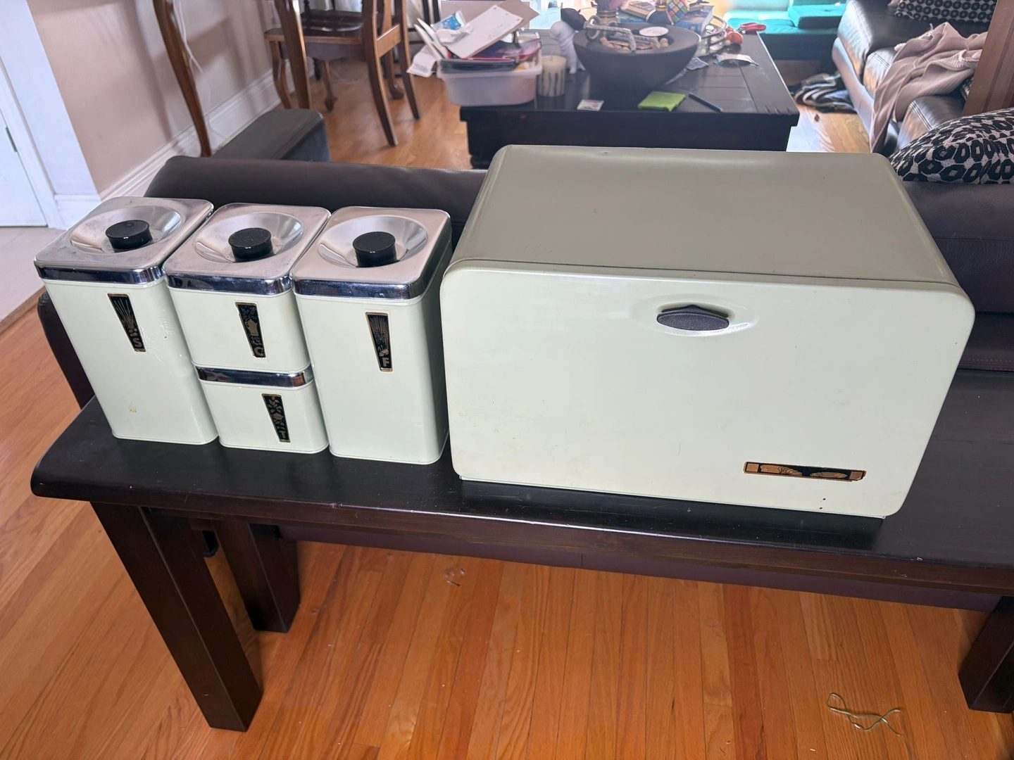 1960's Set of 5 Pieces-Green Steel Bread Box With Tea ...