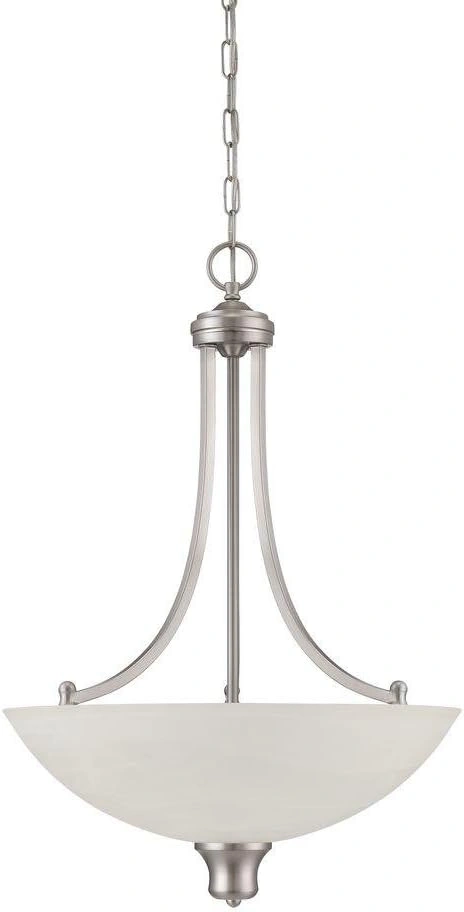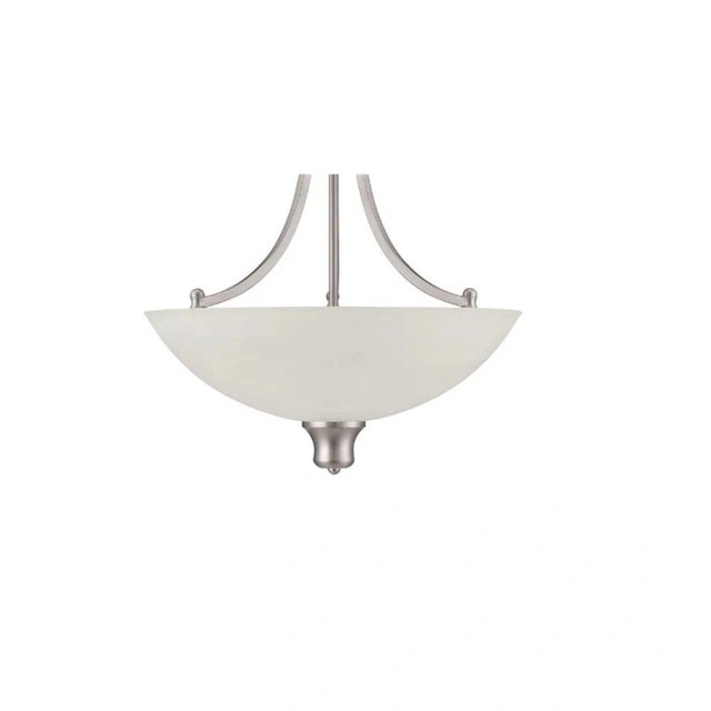 New pendant light fixture. A few available at $40 each. The Luminance Sunset Lighting F5433-53 Alton is a 3-light transitional pendant fixture featuring a bright satin nickel finish and alabaster glass bowl. Designed for dry indoor locations, this dimmable, 17.75-inch wide fixture uses three 100-watt medium-base bulbs to provide upward, ambient light. Dimensions: Approximately 17.75" x 25.50". Please see my other ads!