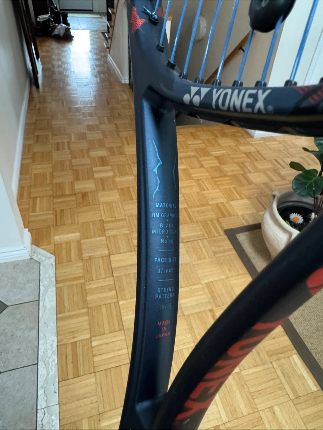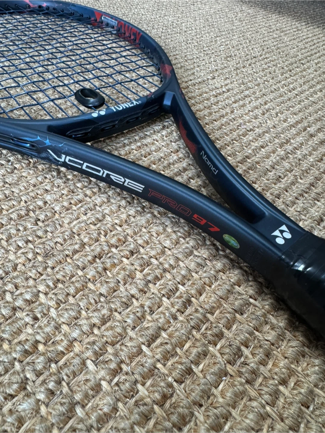 Yonex VCORE PRO tennis racket newly restrung to specs.