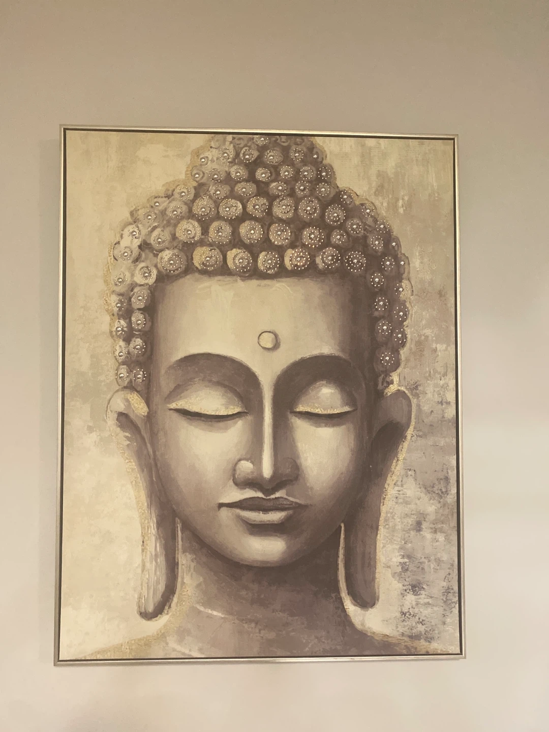 Selling a set of two Buddha canvas wall art pieces. They feature a serene Buddha design with gold accents. Perfect for adding a peaceful touch to any room!