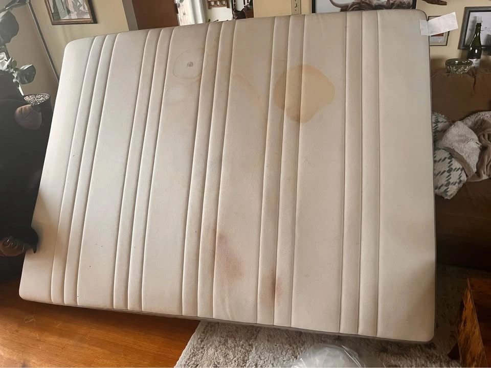 - Visible stains on the mattress cover (see photos)
