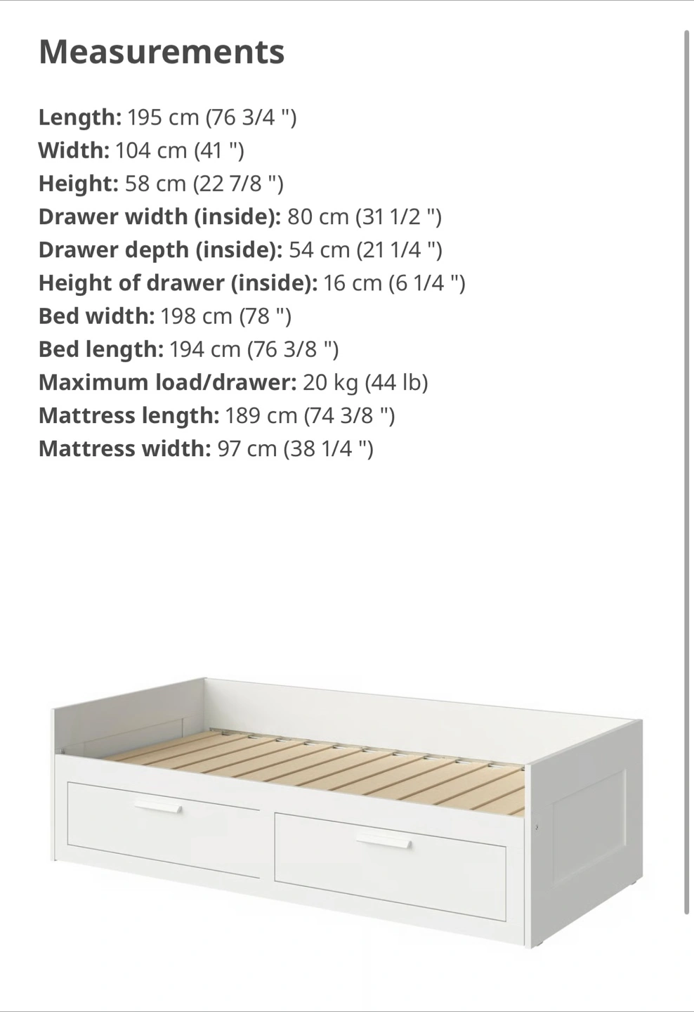 Daybed frame with 2 drawers, white, Twin