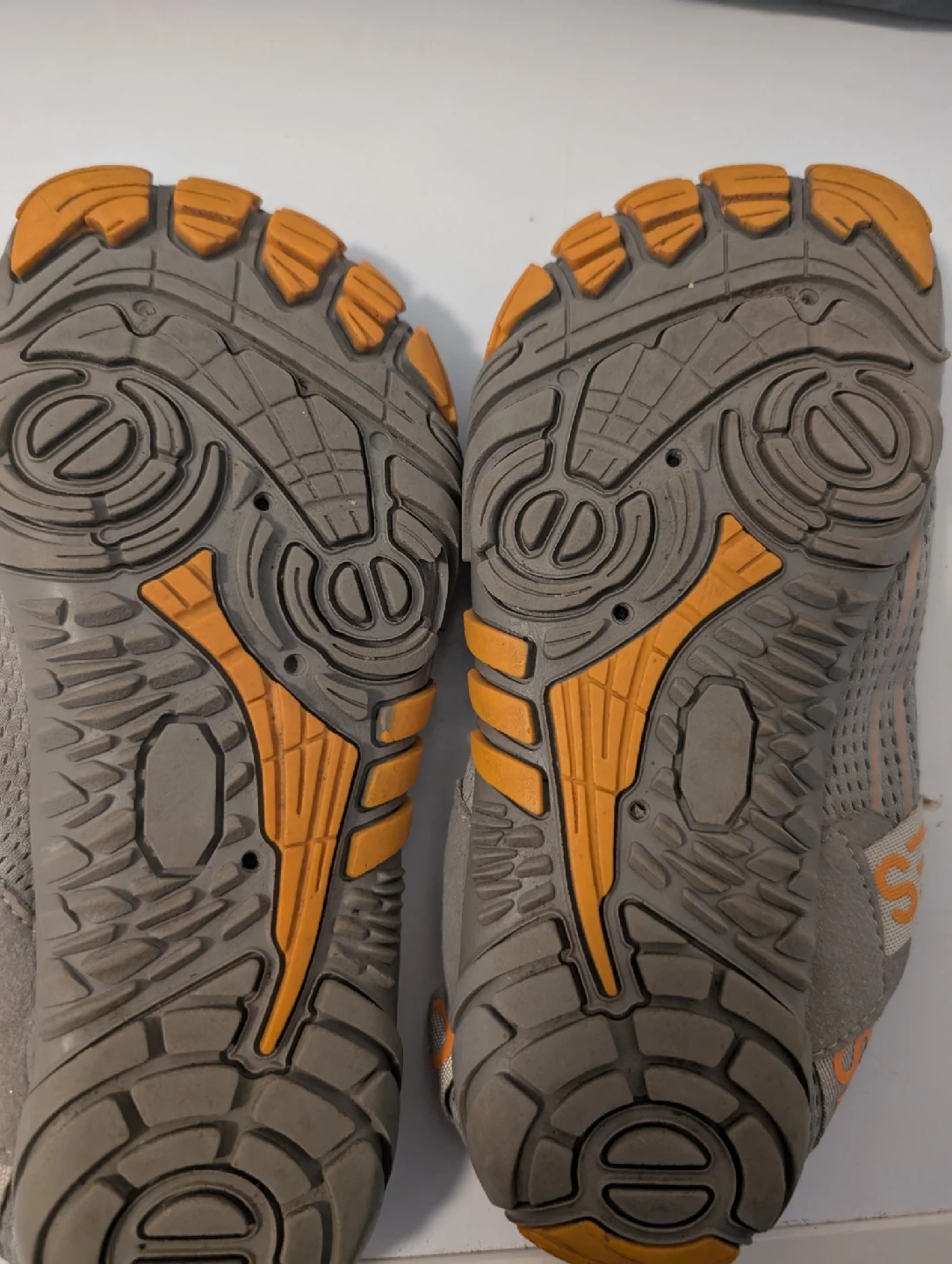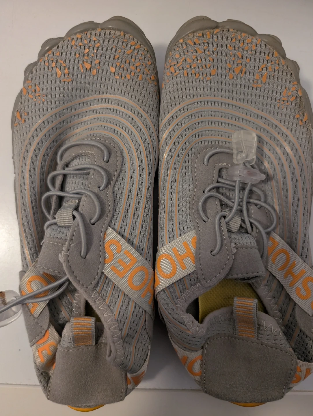 FiveFingers shoes in a grey and orange colour scheme! They're in great shape and ready for a new home. Perfect for lake and ocean experience!
