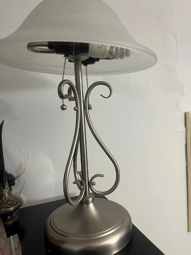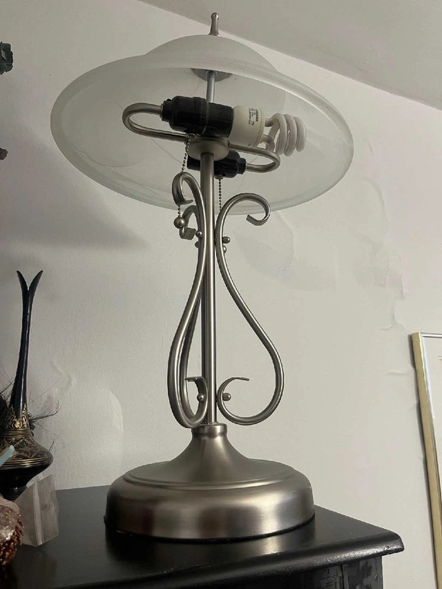 Pewter desk or bedside lamp - $105. Takes screw-in bulbs of various types. Used - Good condition.
