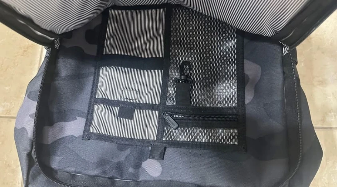 This Herschel backpack features a cool grey camouflage print. It's made from durable fabric and has multiple internal pockets for organization. Great for everyday use or travel!