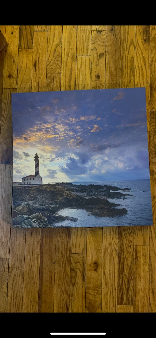 Bring calming coastal vibes into your home with this large lighthouse seascape canvas. Beautiful sunset sky, ocean waves, and rocky coastline—perfect for living room, bedroom, office, or beach-themed décor.