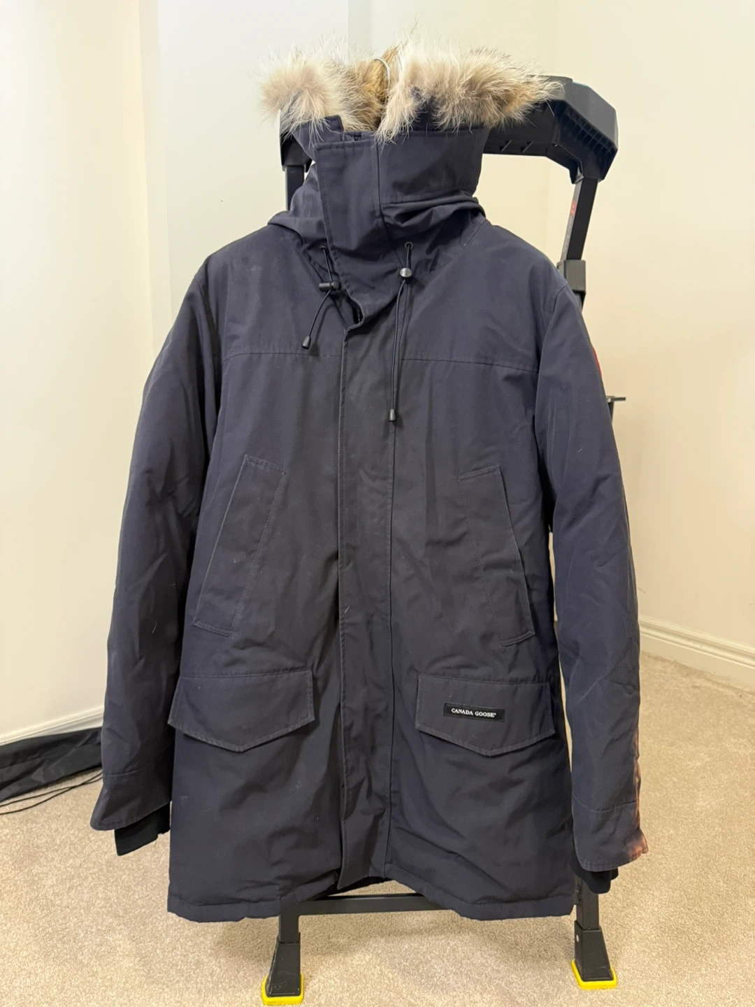 Selling a genuine Canada Goose down parka with fur-trimmed hood. The jacket is overall in great condition and has been well taken care of.