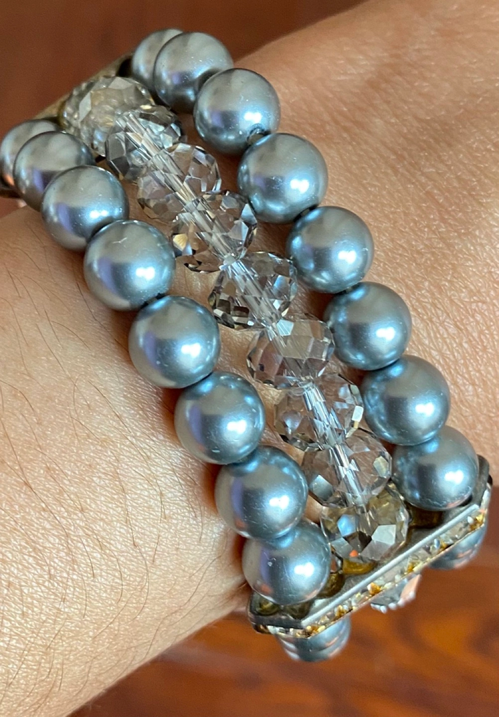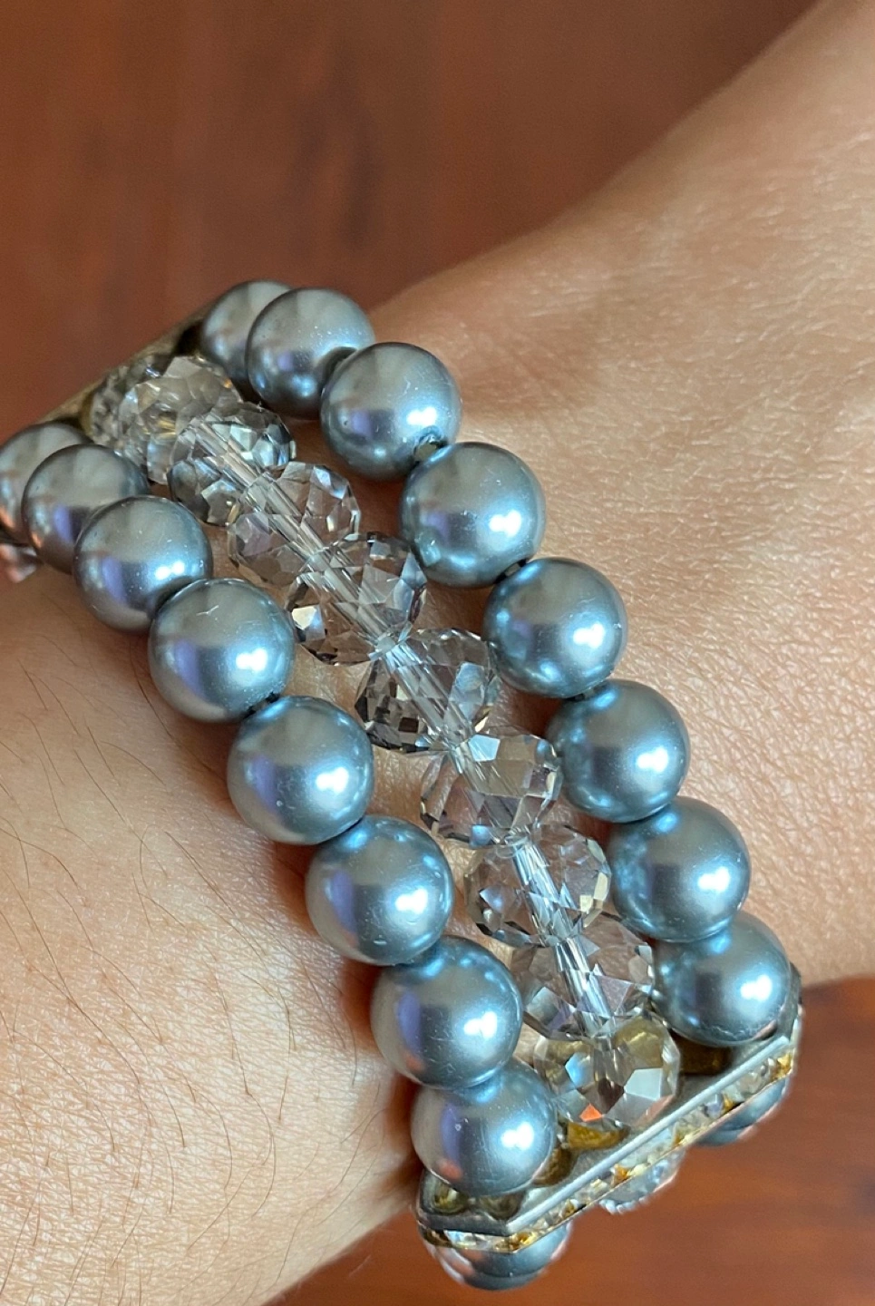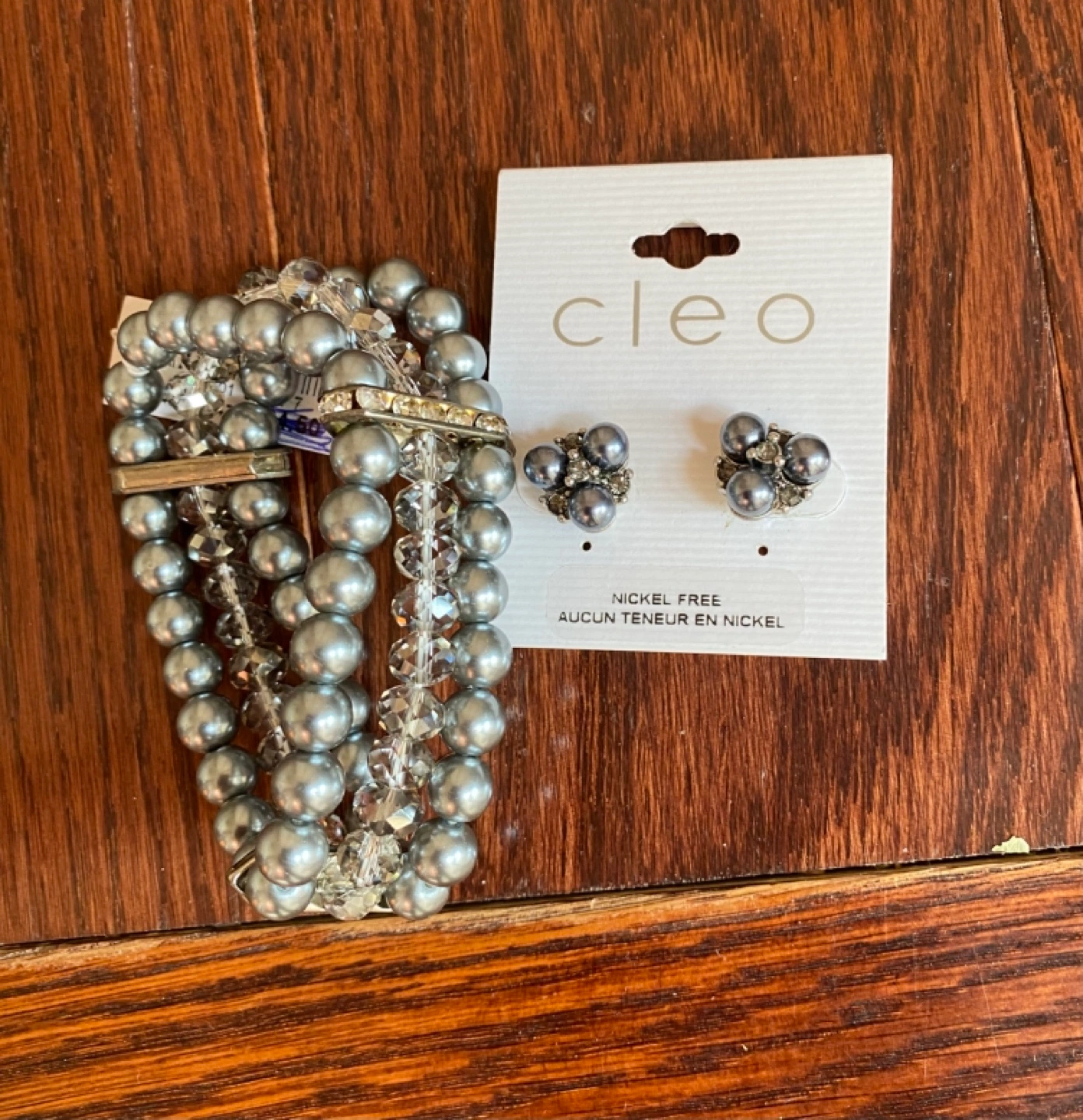 Beautiful grey pearl bracelet and earrings set. Nickel free. Elegant design, perfect for special occasions. New with tags.