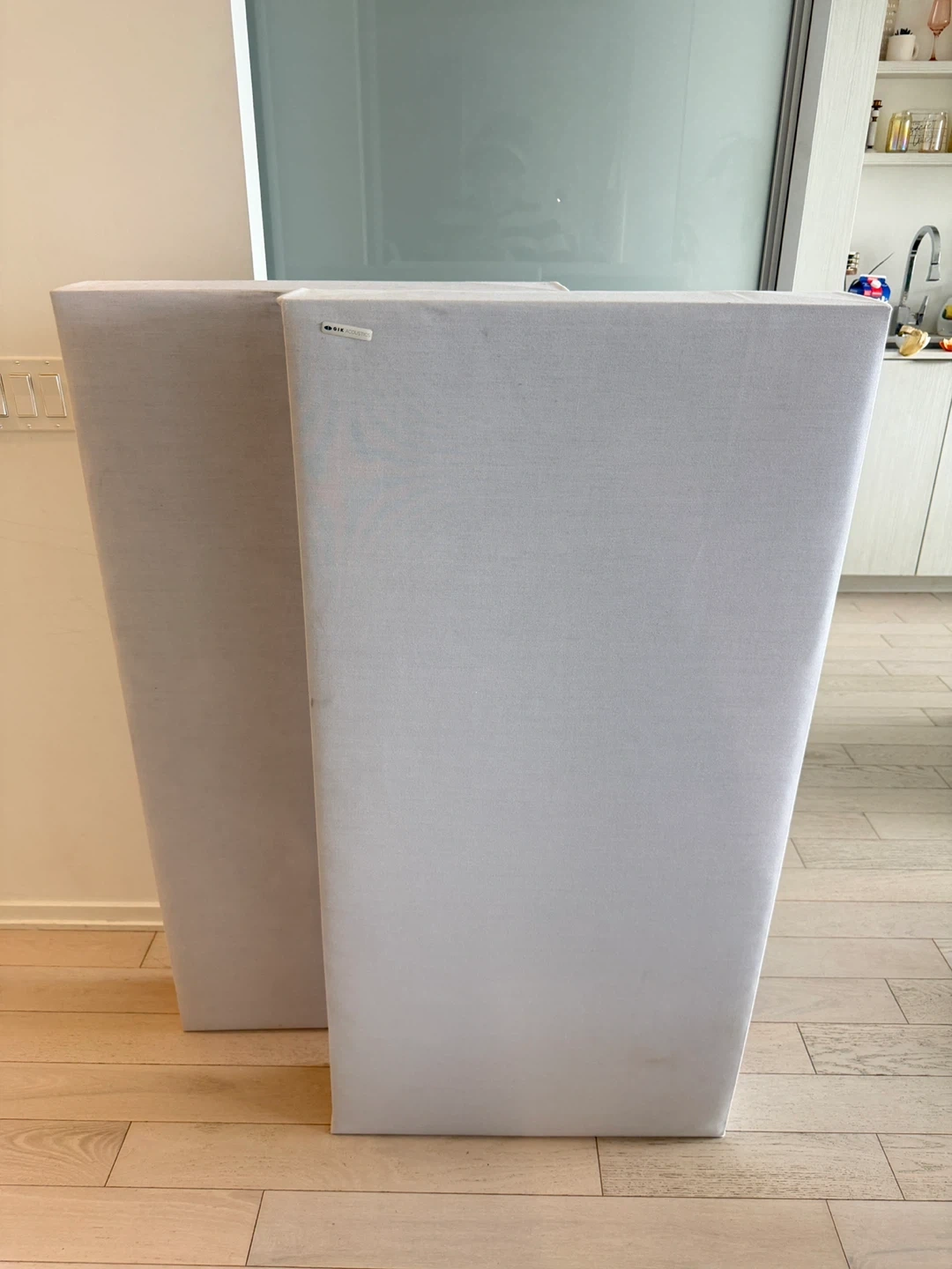 These were made to order in 2021 by GIK Acoustics and have been gently used, but primarily kept in storage since. One of the two is somewhat scuffed and the backing was coming slightly out so it was taped in place but functions exactly as expected.