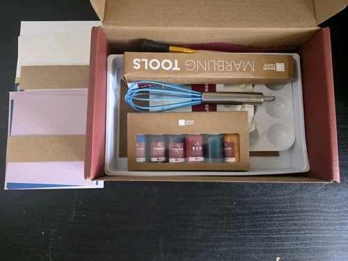 Unleash your inner artist! This all-in-one DIY kit has everything you need to create stunning marbled paper projects. New and unopened – perfect for gifting or crafting your next masterpiece.