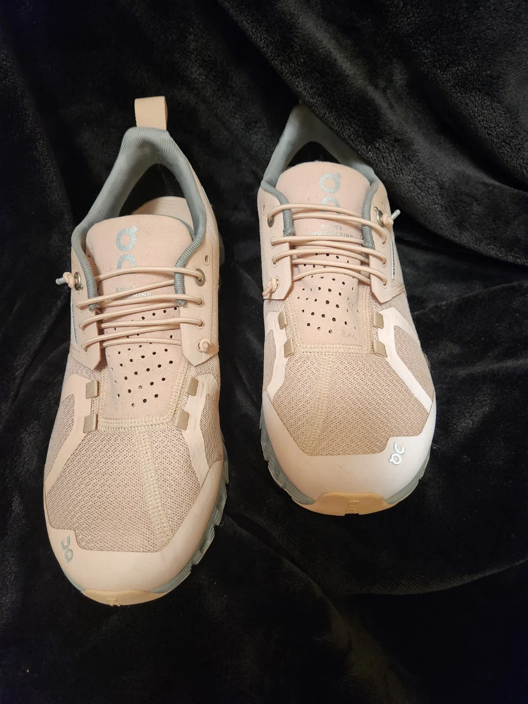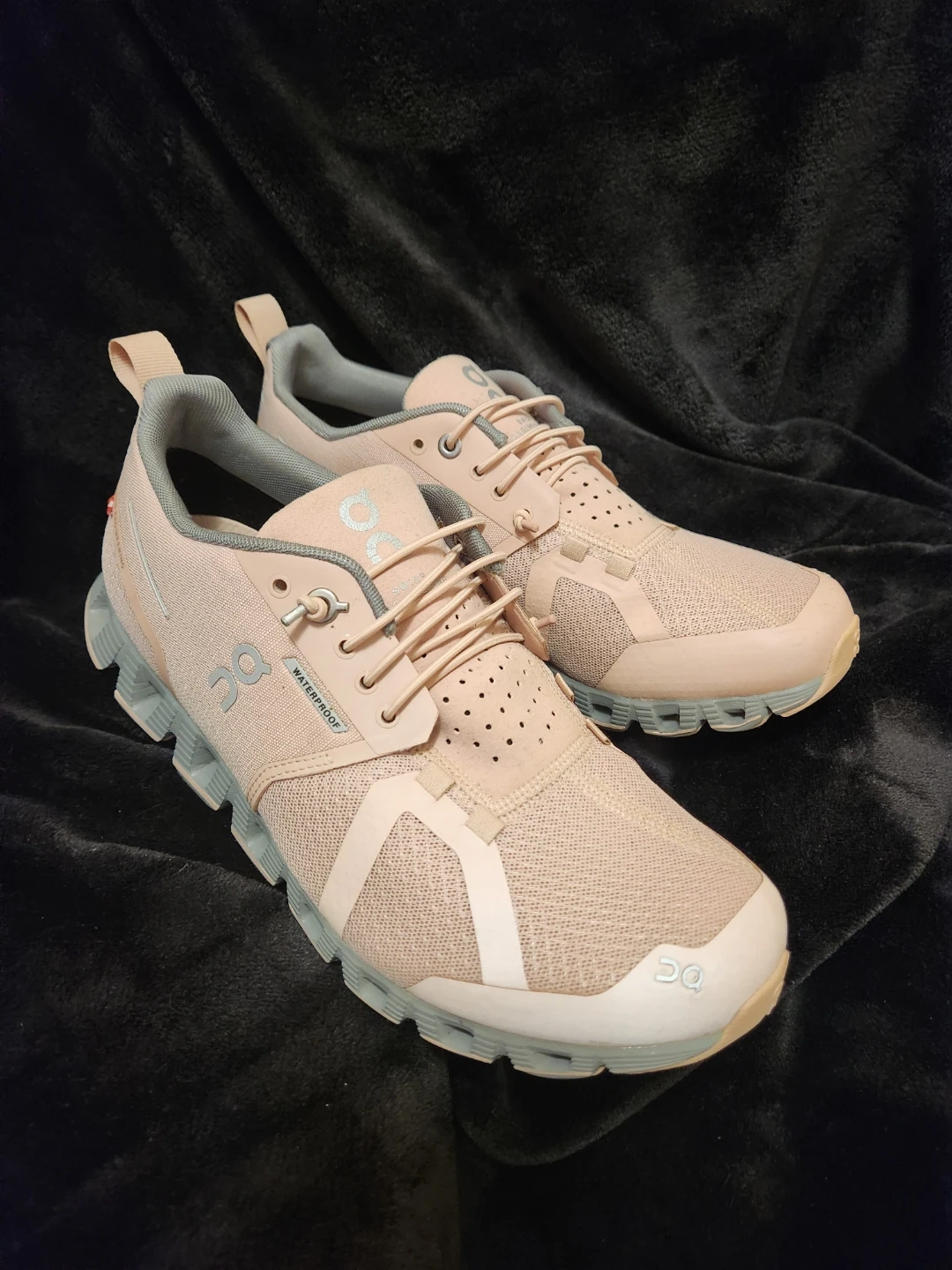 Selling a pair of On Cloud waterproof running shoes in a lovely light pink color. They are in great condition and ready for your next run! Size 7.5 US