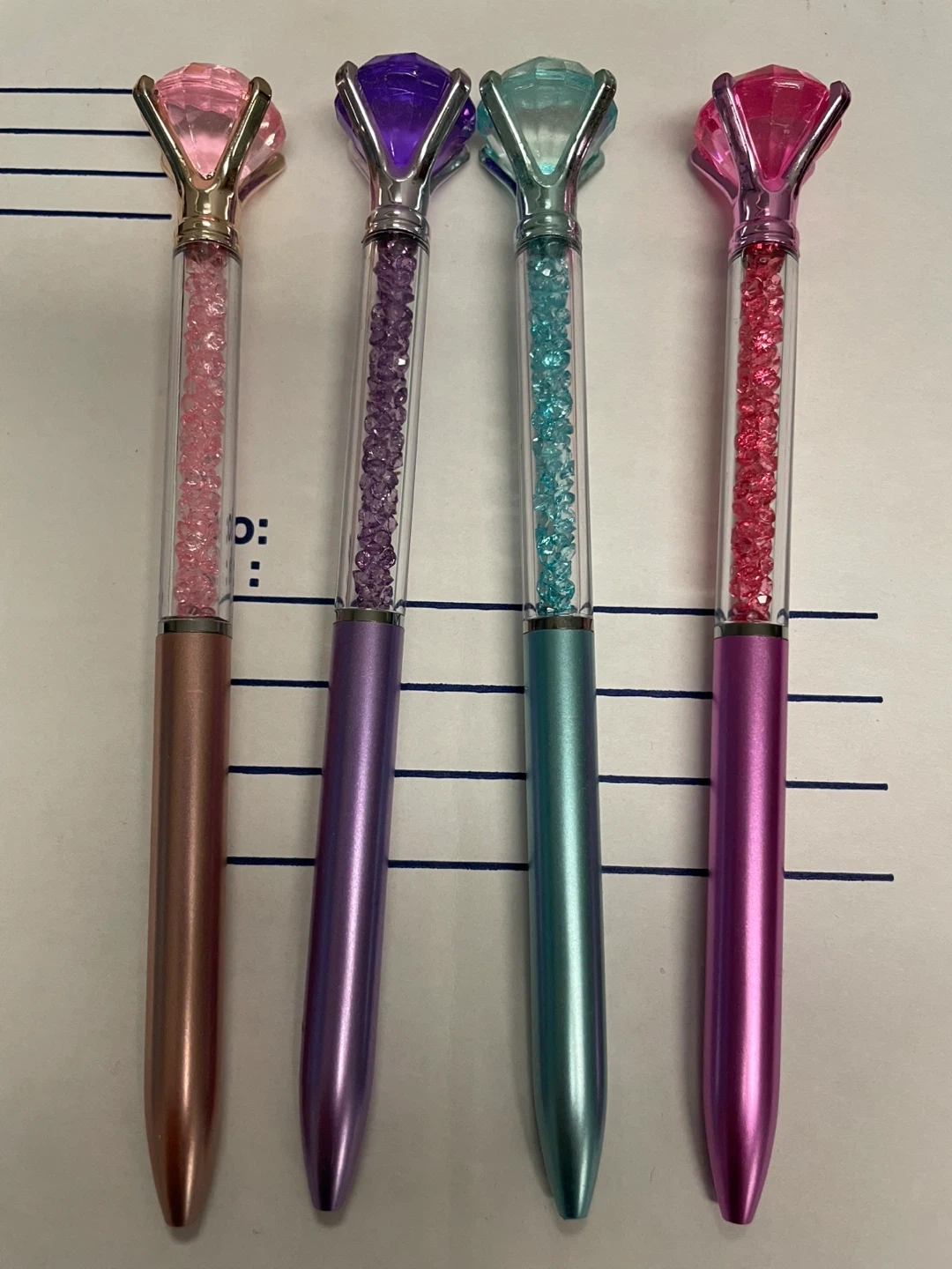 80Selling diamond crystal pens! These pens come in pink, purple, teal, and magenta. They're perfect for adding a bit of sparkle to your everyday writing. The pens are filled with small, colourful crystals that catch the light beautifully. Great for anyone who loves a touch of glam! $5.00 each pen. Willing to negotiate. I have 51 pens left.