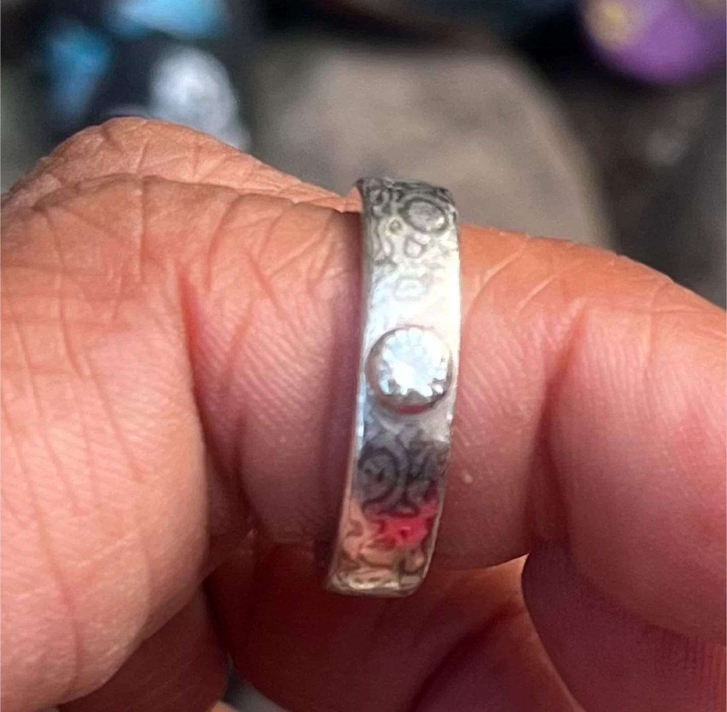 Selling a ring by Andrea Golden Jewellery. It features a unique white gold design on heavy silver with a bold line and a small diamond. Each piece is crafted with care and attention to detail, making it a special addition to any collection. Originally paid $3000. Asking for reasonable offers.