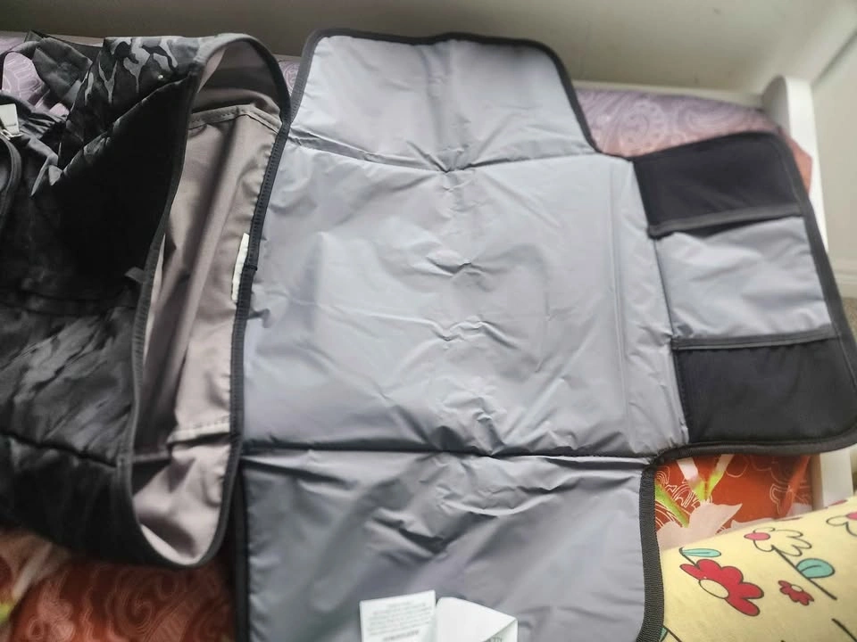 10Gently used diaper bag 🎒 Good quality and has great life. Comes with lots of storage and changing pad as well. Very Gently used like new one. Brought for $90 asking $50.