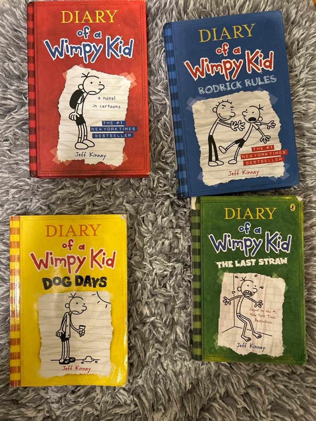 Selling a collection of Diary of a Wimpy Kid books by Jeff Kinney! Titles include The Ugly Truth, Cabin Fever, The Third Wheel, Hard Luck, The Meltdown, Wrecking Ball, The Deep End, Big Shot, The Long Haul, Old School, Double Down, The Getaway, Diper Overlöde, No Brainer, Hot Mess, Rodrick Rules, Dog Days, and The Last Straw. All hard cover except cabin vever, the last straw, the third wheel ,big shot,and no brainer