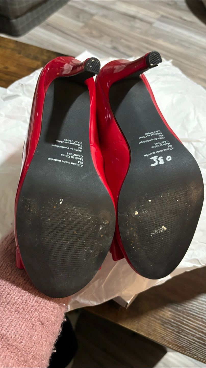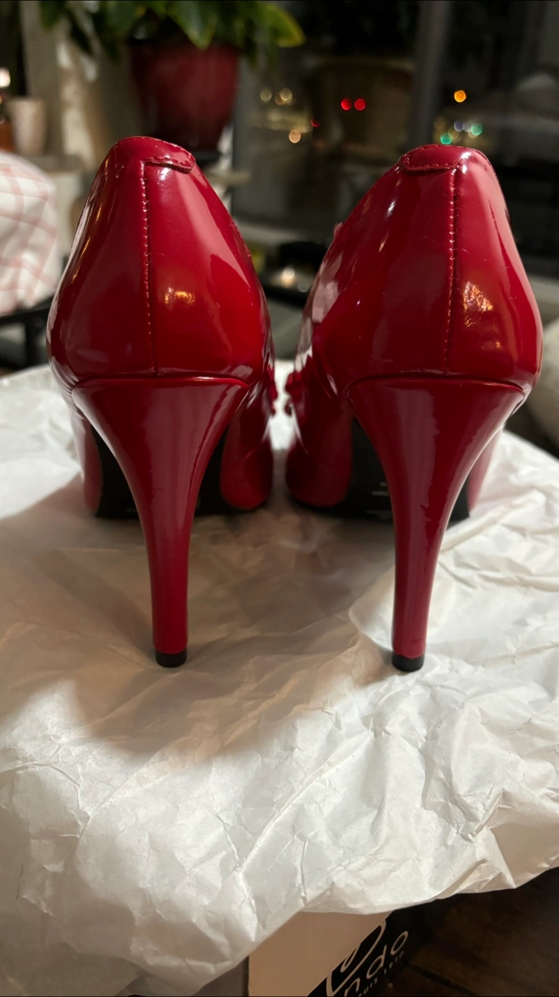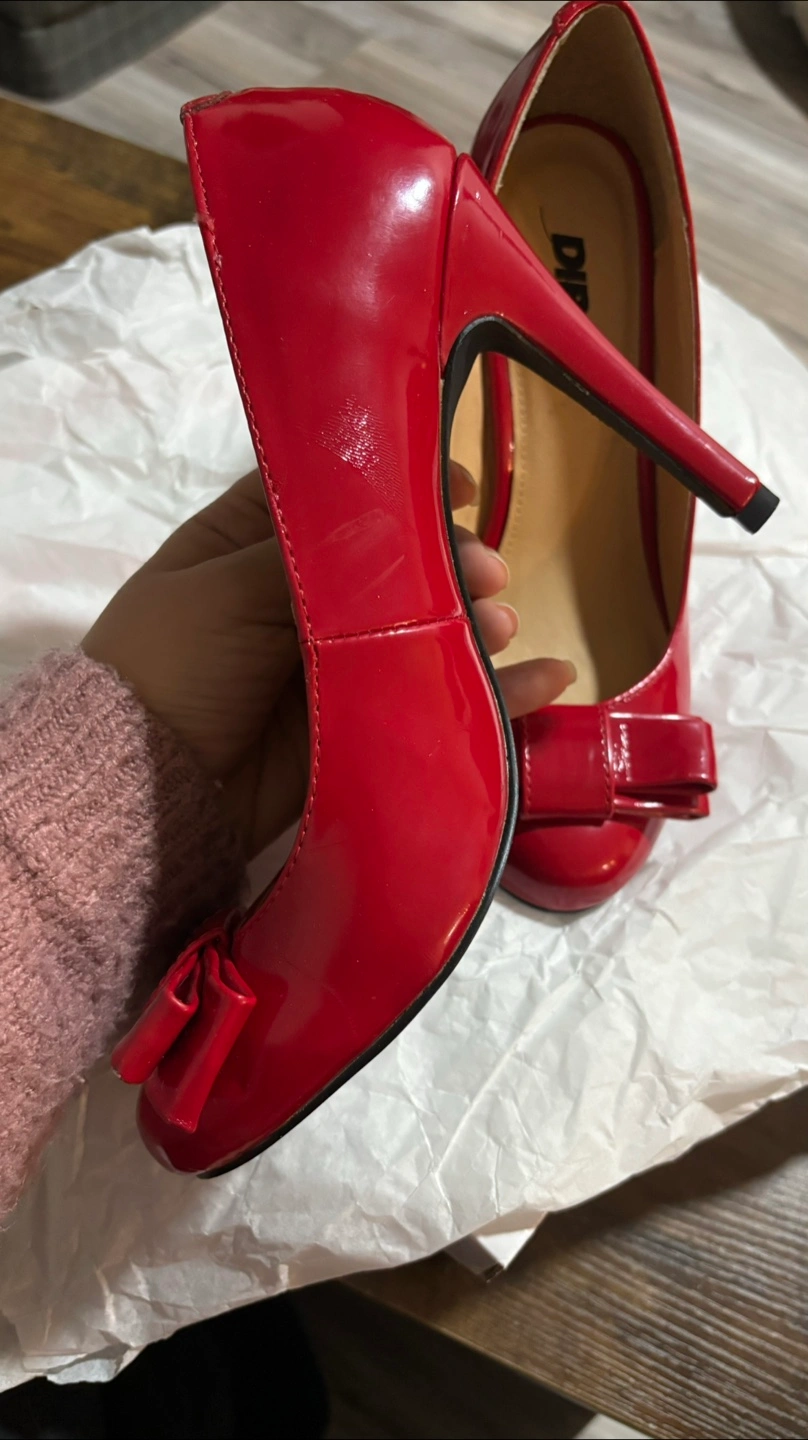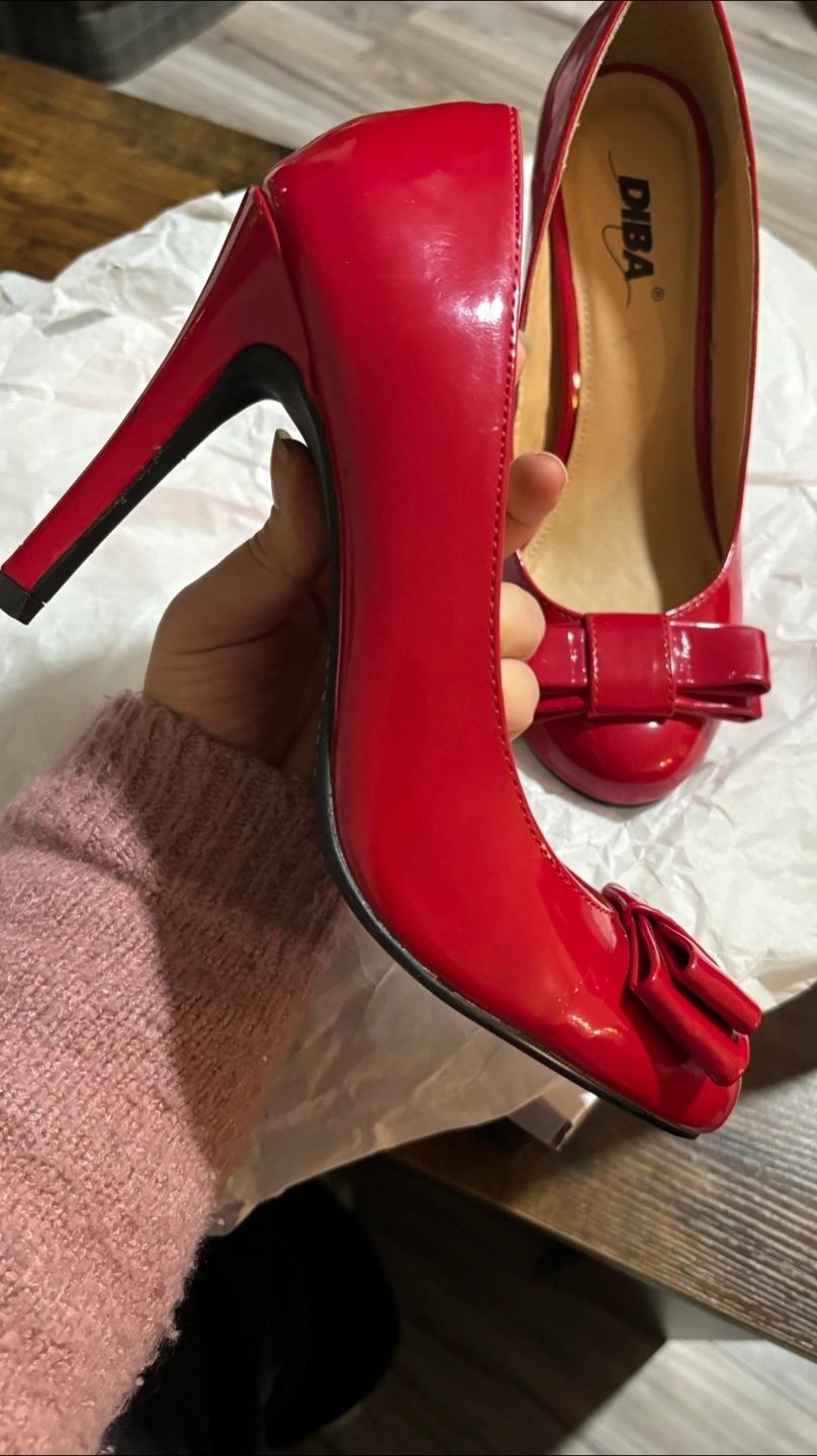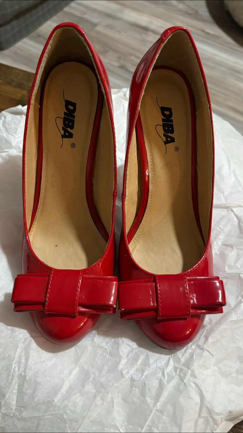 Selling a pair of Diba heels in a vibrant red patent finish! These stylish pumps feature a cute bow detail on the front. They are a size 8 and would be a great addition to your wardrobe for a pop of colour!