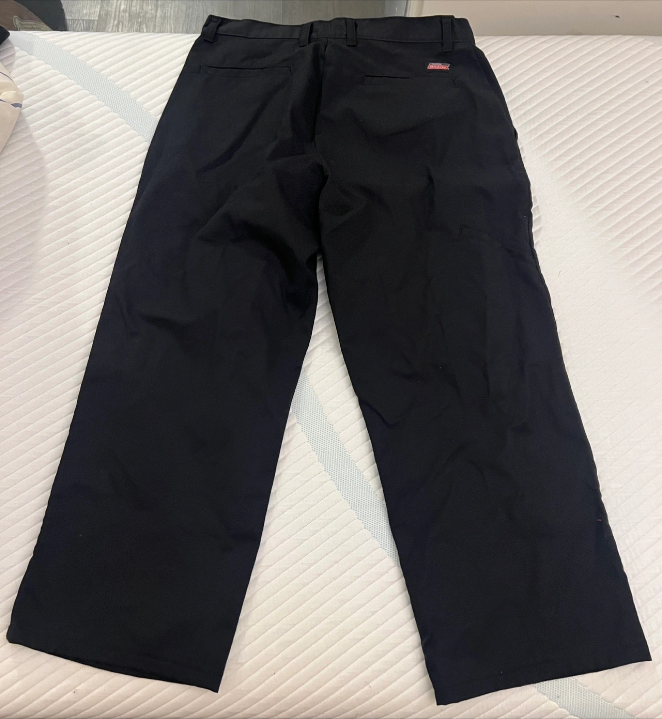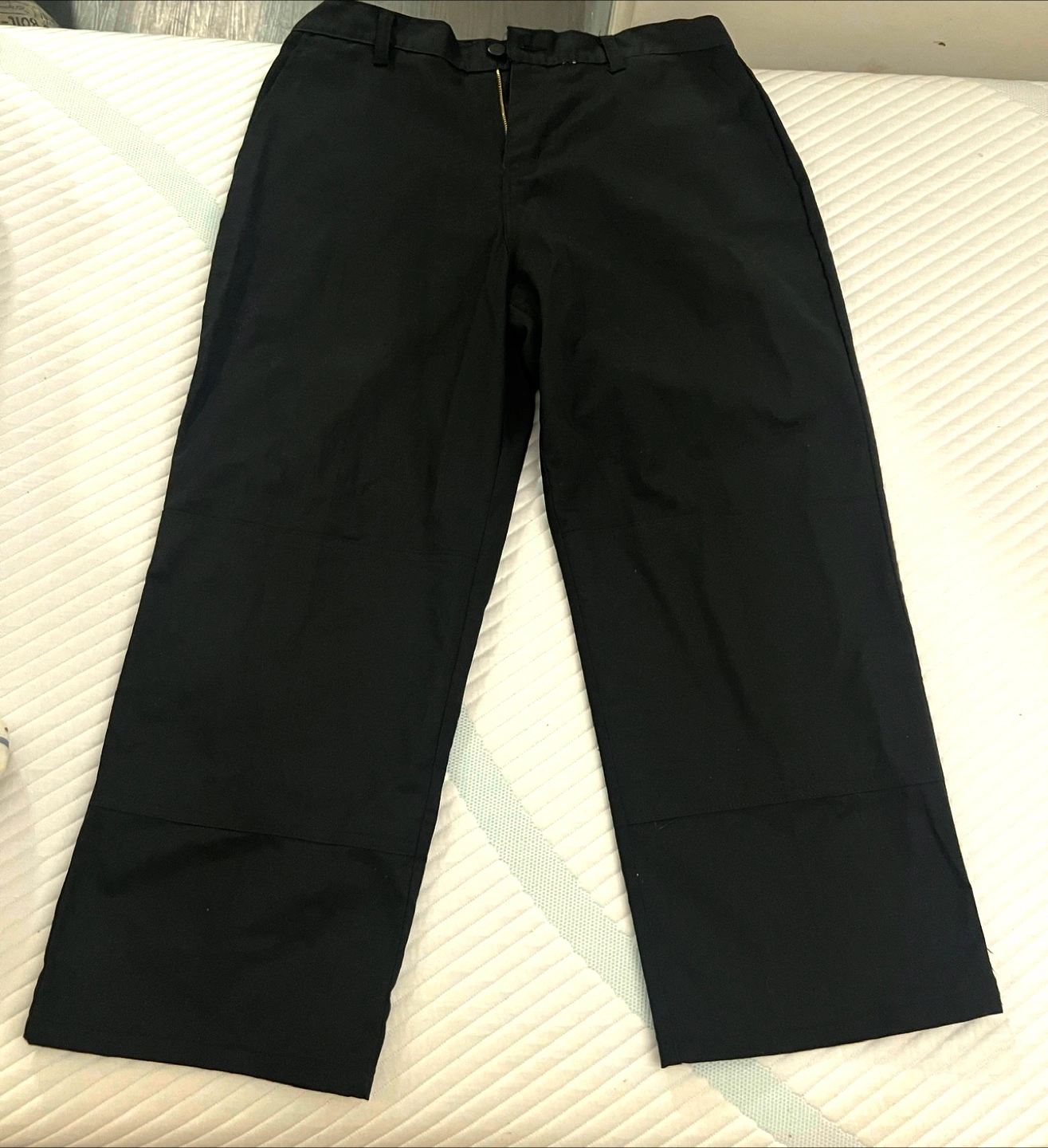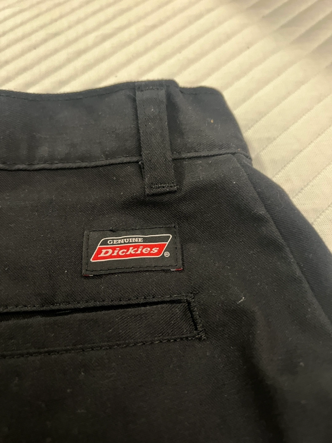 80Used once, Selling a pair of black pants from Dickies! They're in great shape and ready for a new home. altered the length baggy