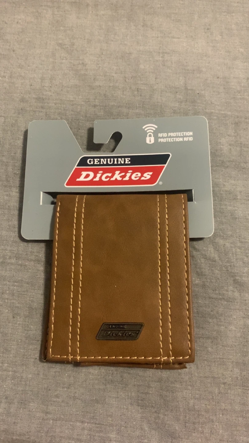 Selling a Dickies genuine leather wallet in brown. It features RFID protection, so your cards are safe and secure. Brand New.