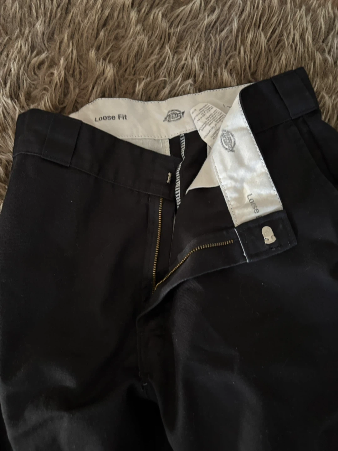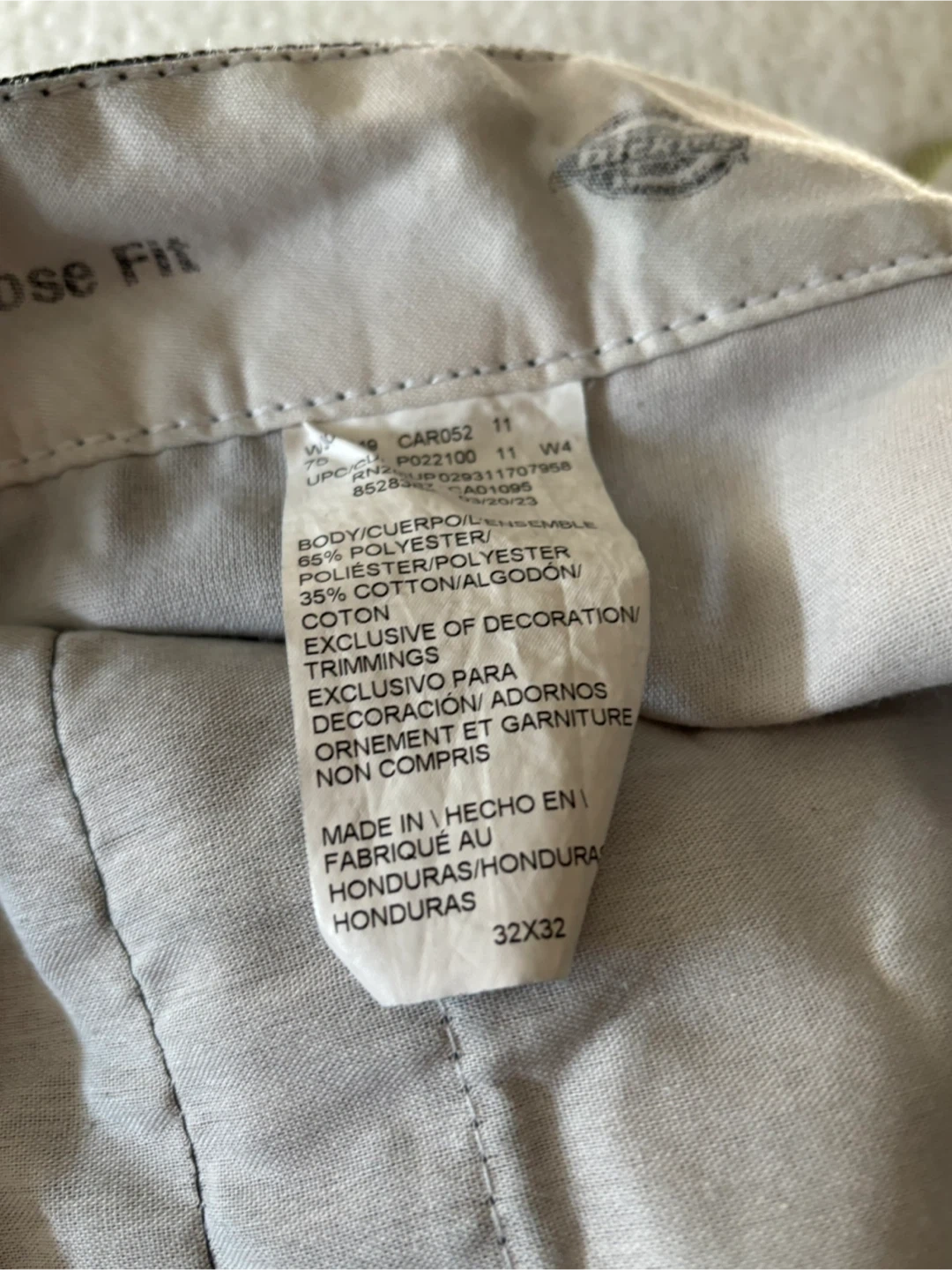 10Selling a pair of Dickies loose fit pants in black! They are size 32x32. The material is 65% polyester and 35% cotton.