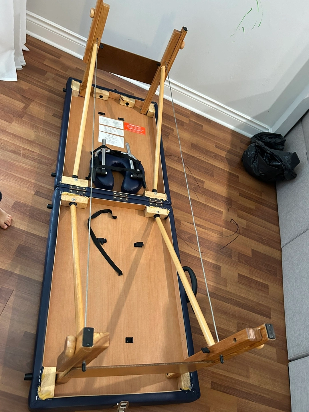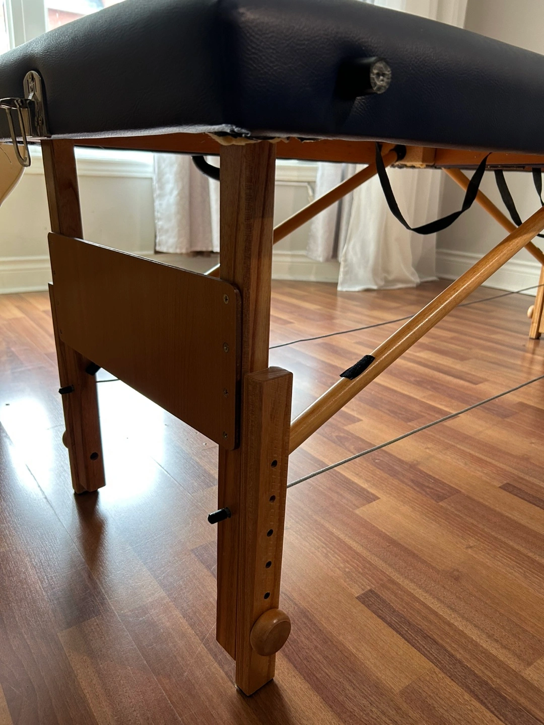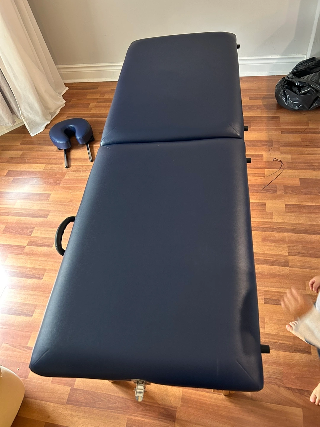 Selling a portable massage table. It's in good condition and very stable and folds up for easy storage and transport. The table is a dark blue colour and has wooden legs. Great for students or professionals, massage therapists, lash technicians who need a mobile option! FREE COVER WITH PURCHASE