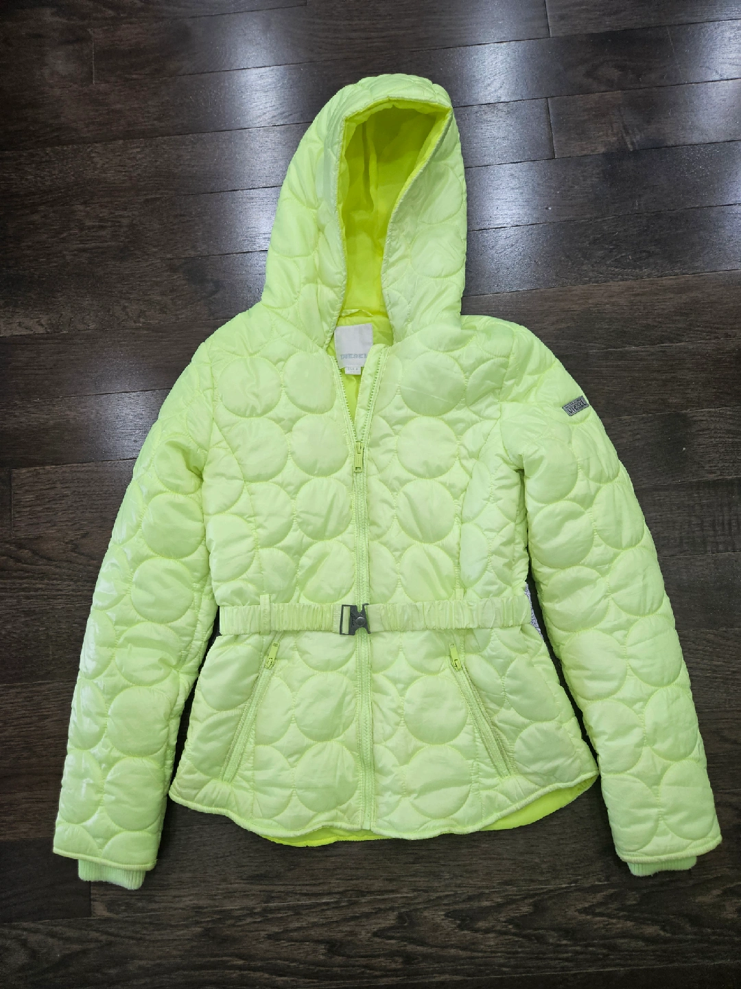10Diesel padded jacket in a vibrant lime green colour! This jacket is a size L (kids) and features a unique quilted design. Perfect for adding a pop of colour to your wardrobe!