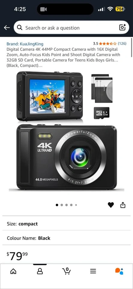 Item is available as long as the listing is up. Pick up location is Jane and Wilson. Last picture is an example of the picture quality. Digital Camera 4K, Upgrade Black Cameras for Teens, Autofocus Digital Point and Shoot Camera with 16X Zoom, 32GB SD Card
