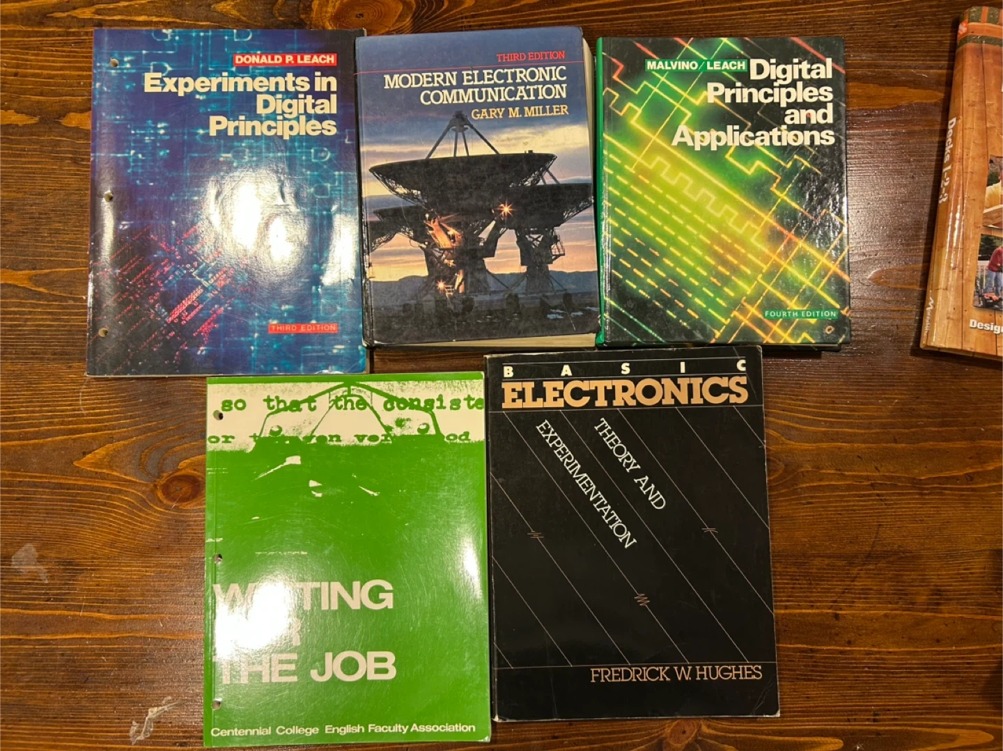 78Selling a collection of textbooks related to digital principles and electronics. Includes: - Experiments in Digital Principles by Donald P. Leach (Third Edition) - Modern Electronic Communication by Gary M. Miller (Third Edition) - Digital Principles and Applications by Malvino/Leach (Fourth Edition) - Waiting the Job, Centennial College English Faculty Association - Basic Electronics Theory and Experimentation by Fredrick W. Hughes