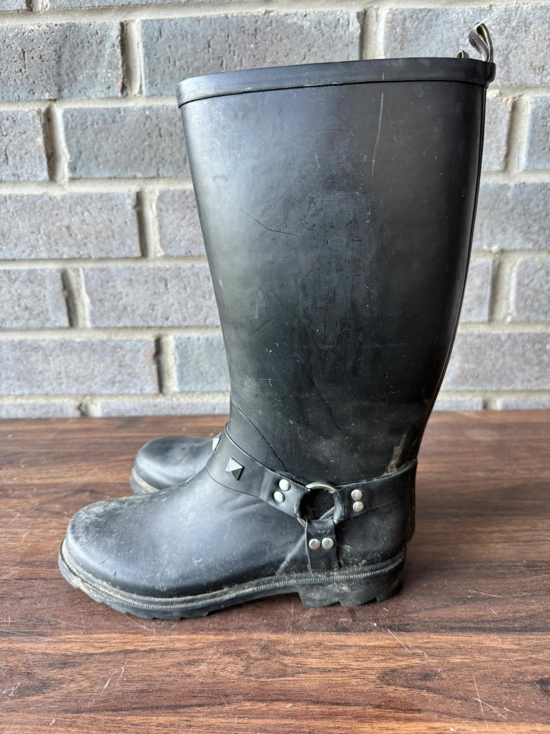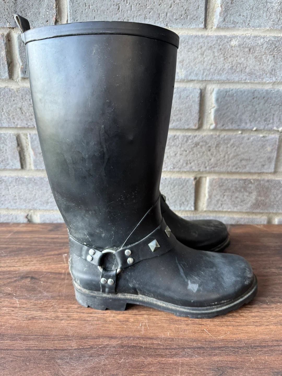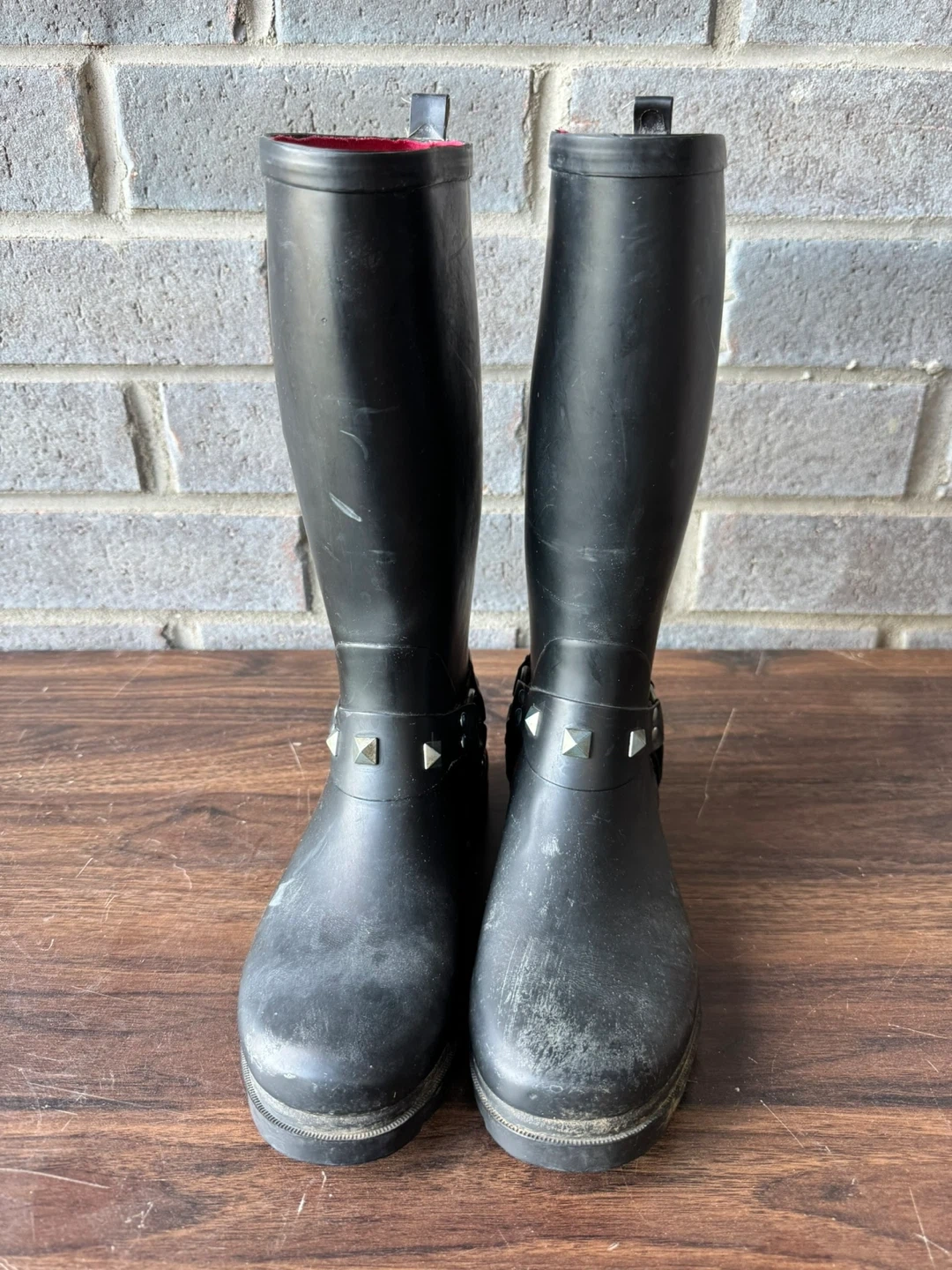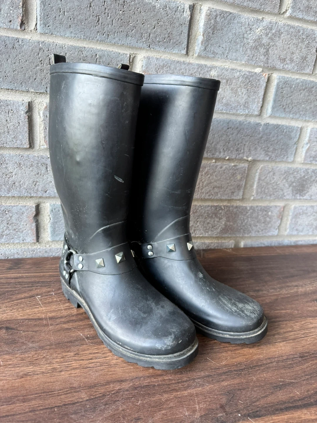 Black studded rain boots / rain shoes / size 8 / women / black