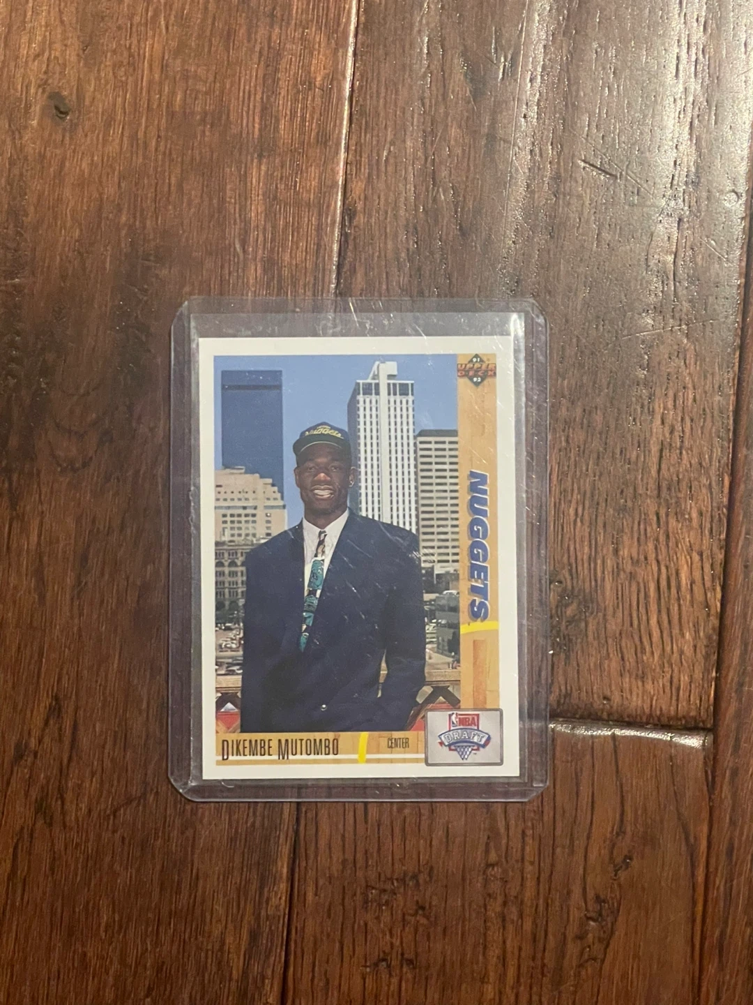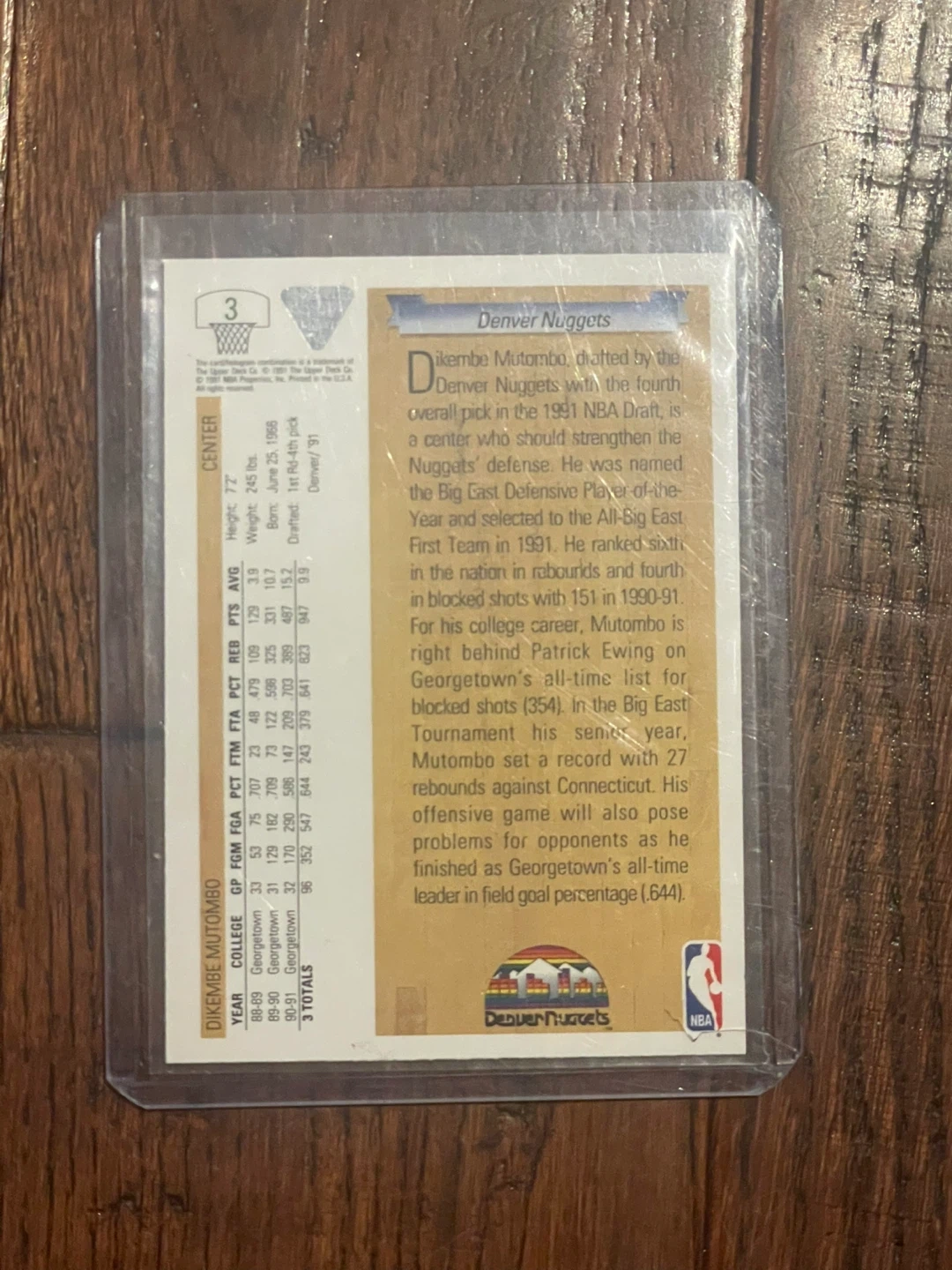 Dikembe Mutombo 1992 NBA Hoops Rookie Card in hard plastic case