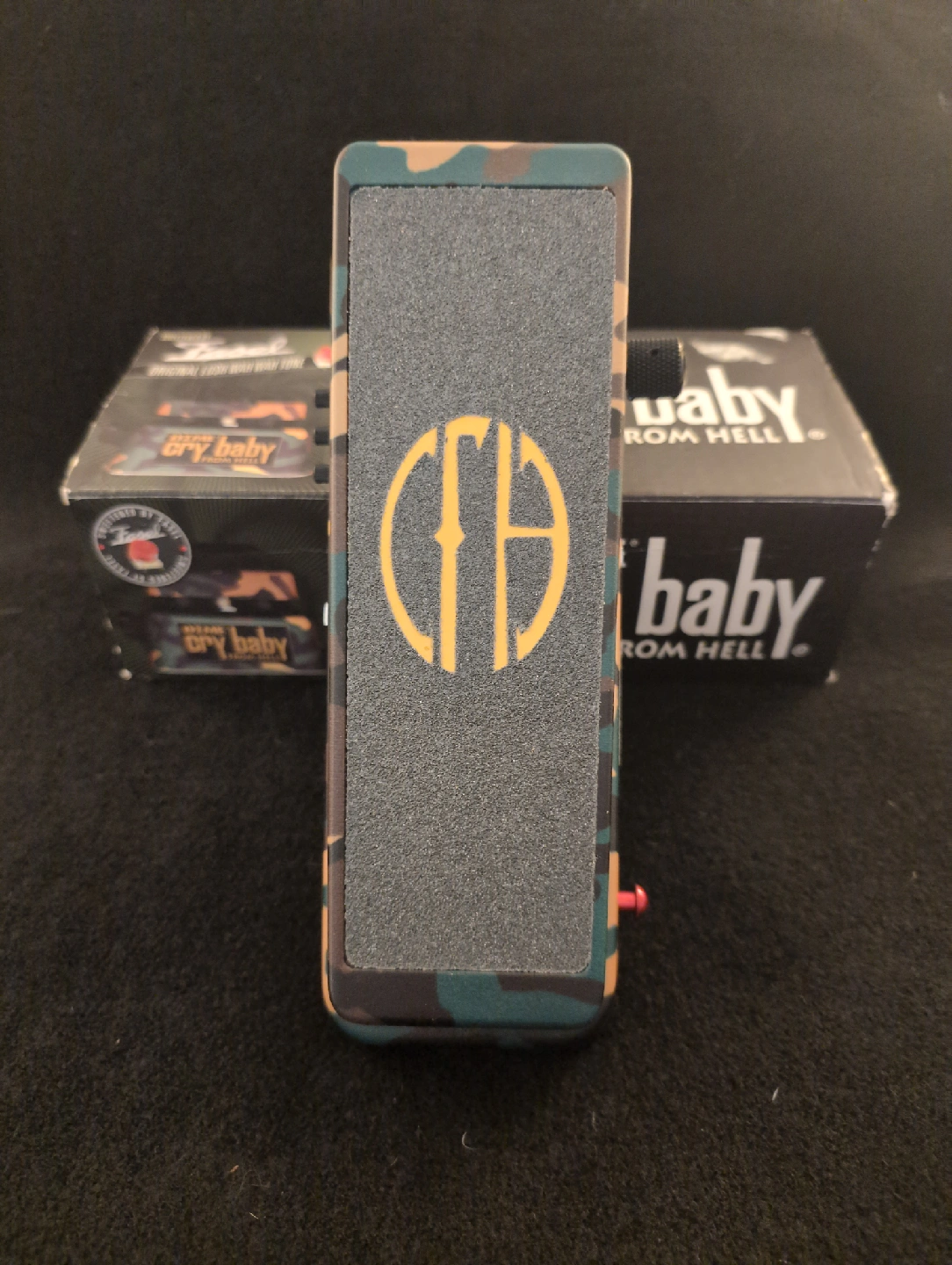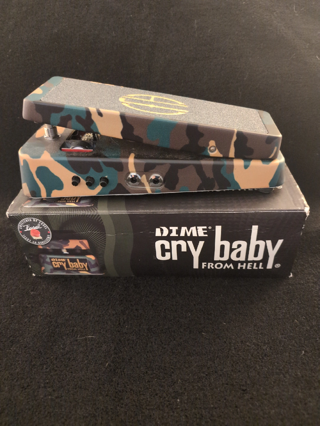 Selling a Dime Cry Baby From Hell wah pedal. It has a cool camouflage design! Only used once for a few minutes. It's as close to new in box as you're gonna find. Comes with the original box as well.