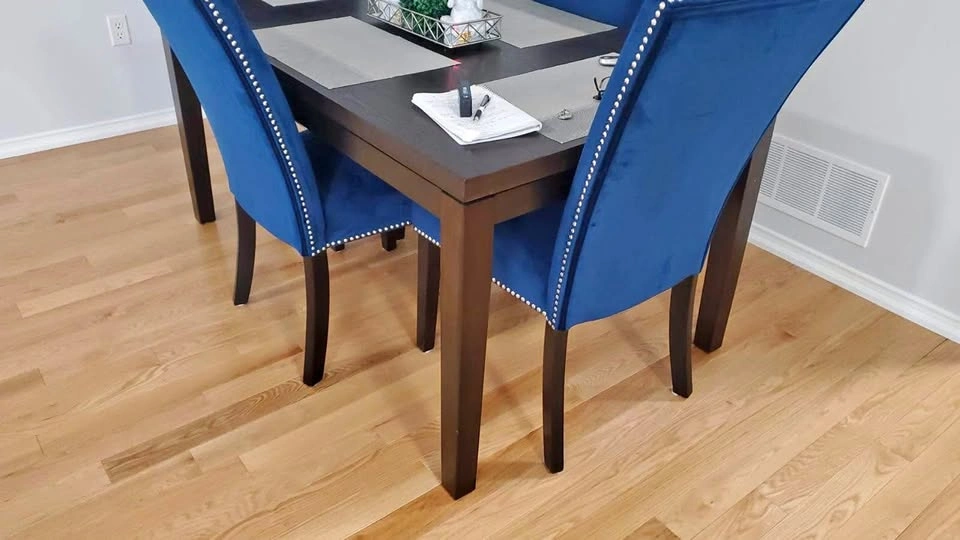 Glass Top Dining Table with 6 Grey Chairs