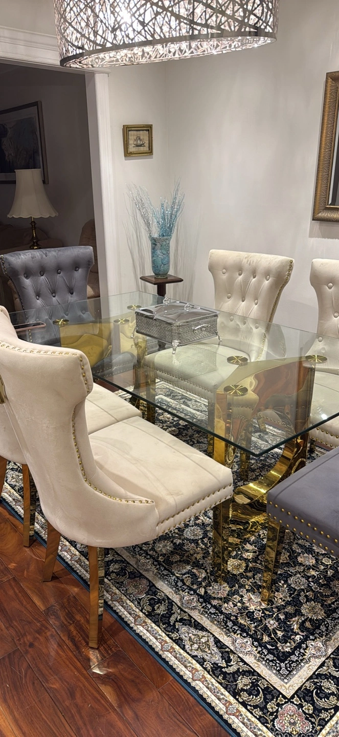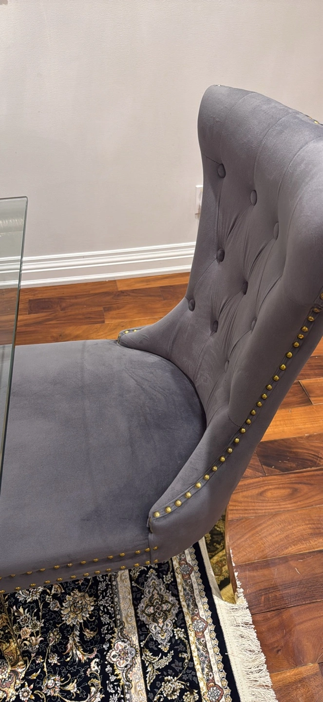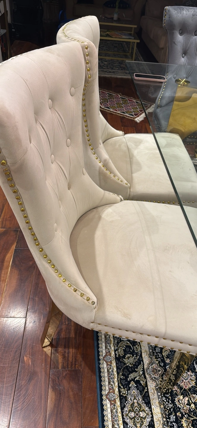 Selling a set of 6 dining chairs. There are 4 cream coloured chairs and 2 grey coloured chairs. They are in good condition and would be perfect for someone looking to furnish their dining room! So clean and barely used
