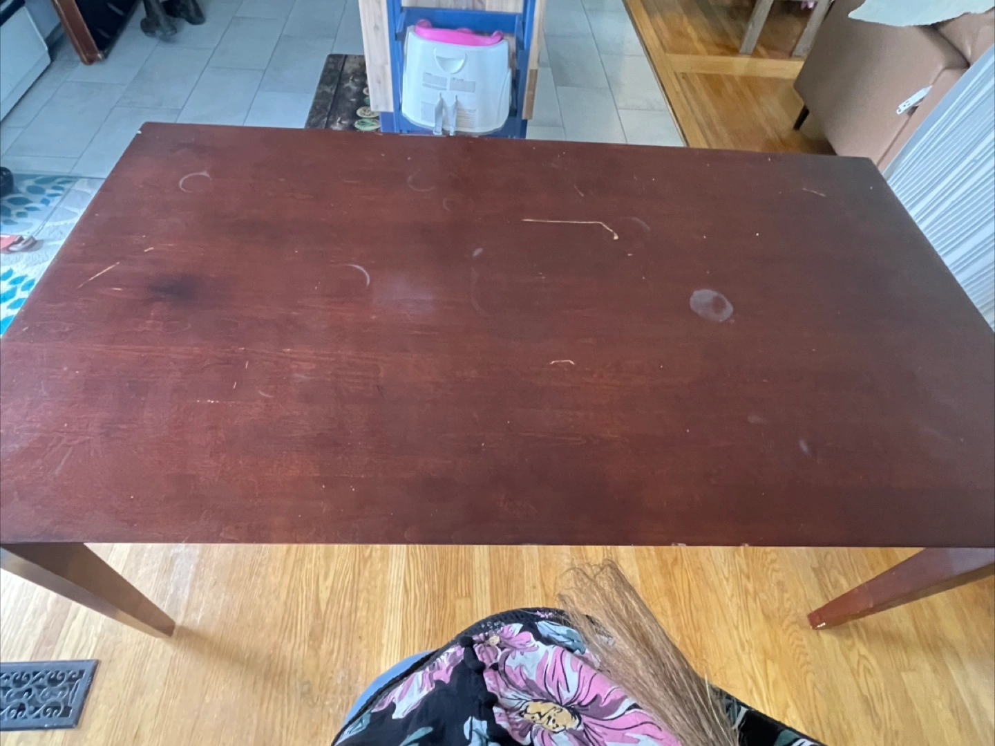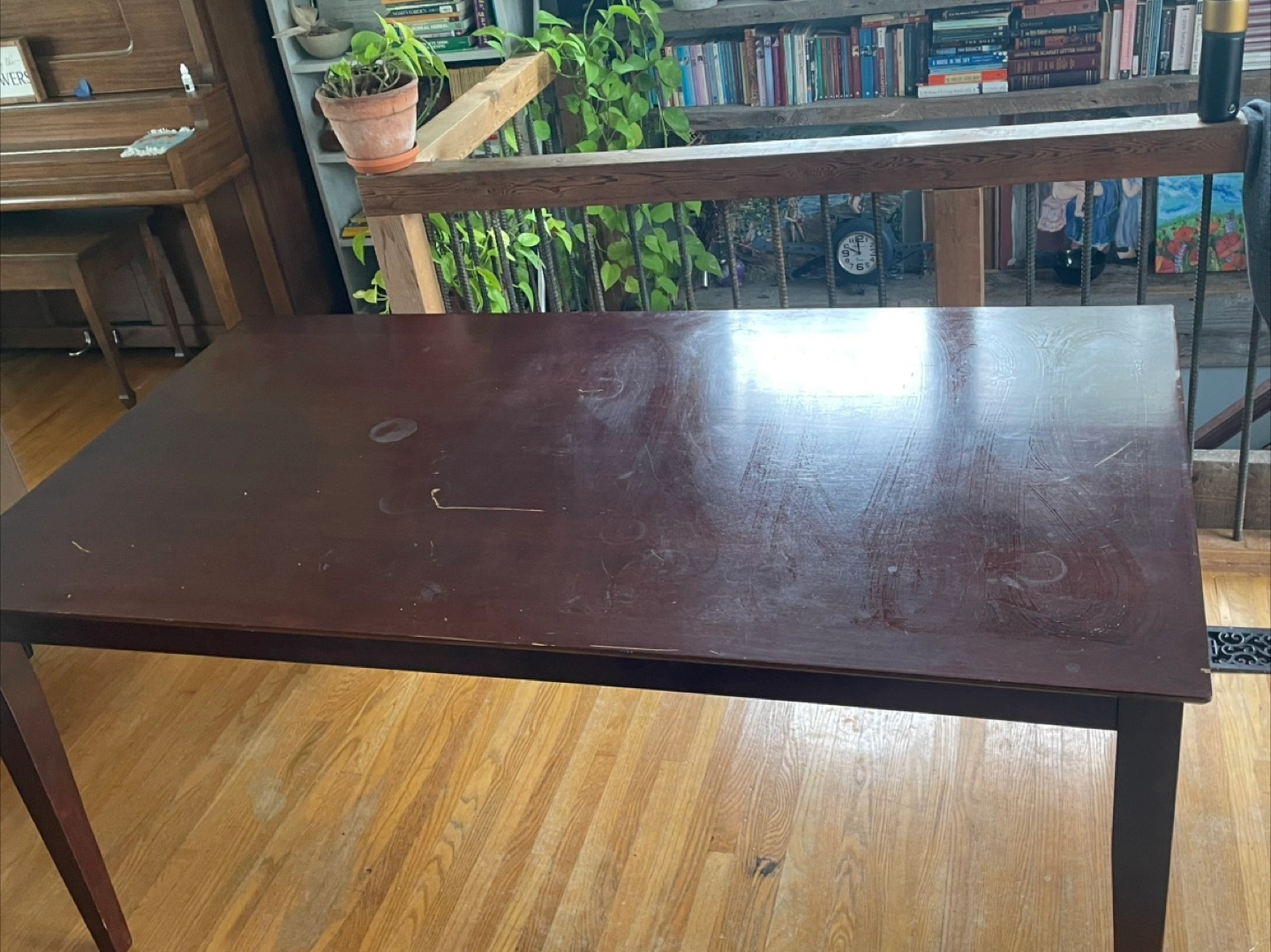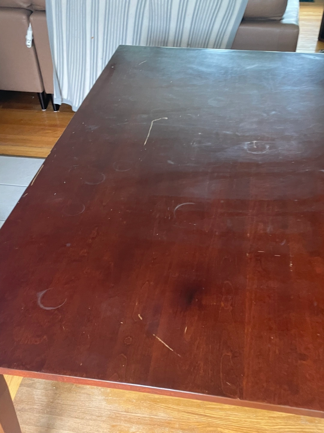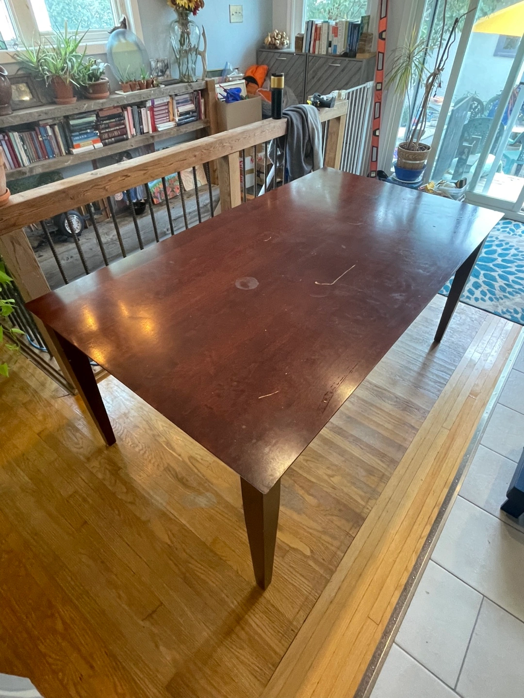 Dining Room Hardwood Table LARGE Heavy duty table Not rickety whatsoever. A little bit of marks on the surface. Moving sale! 68” x 38” x 30” Listed for $200 Reduced to $80 cash Pick up is in east kildonan on Dunrobin Ave Pick up will require a large SUV or a truck. We have the table disassembled, and it only take an Allen key to put the table legs on. It’s heavy, so maybe bring a friend to help you lift it, if not someone here can likely help you. Cash only. No e-transfer. No delivery possible.