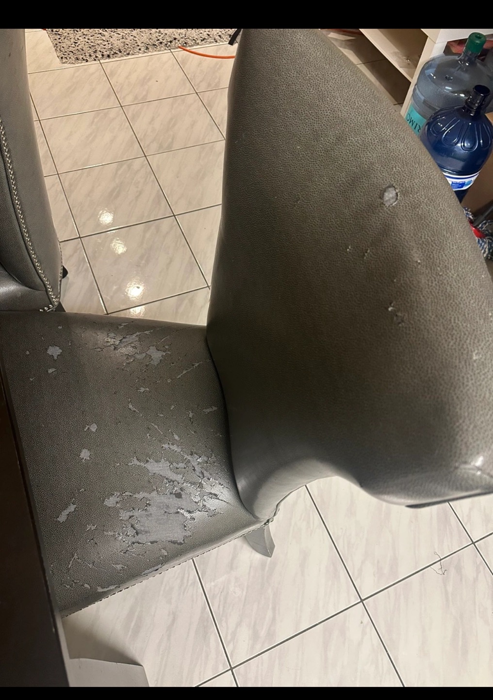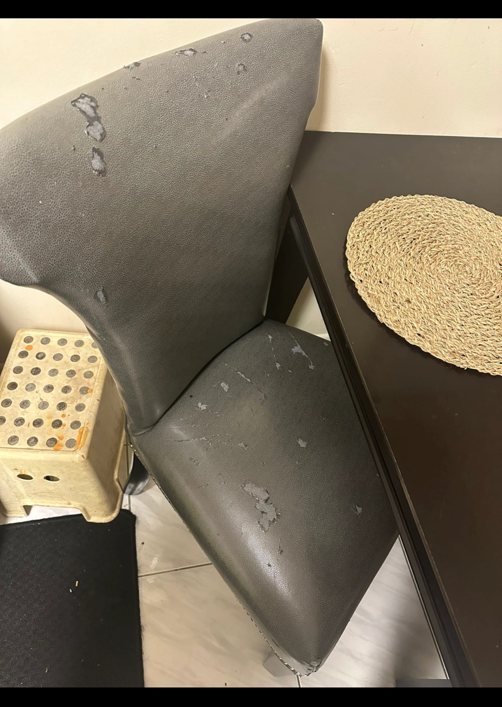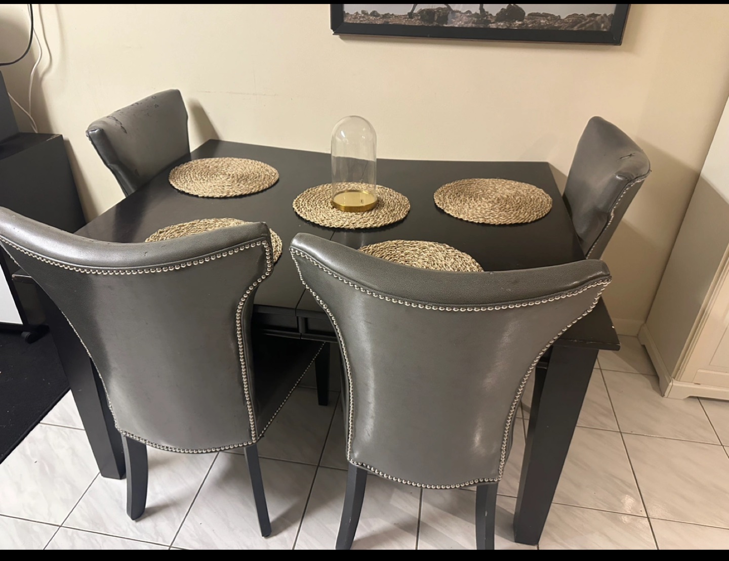 111Very heavy duty table set, the middle opens up to make it large enough to seat 10. The faux leather is peeling off the chairs but that’s about it. (First come first serve)