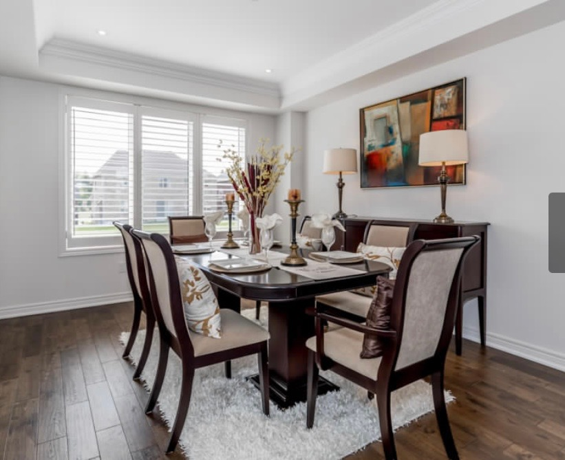 Dining Table Set - Dark Brown Table w/ 4 Chairs + 1 Bench