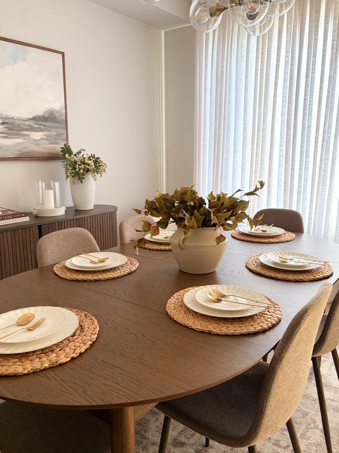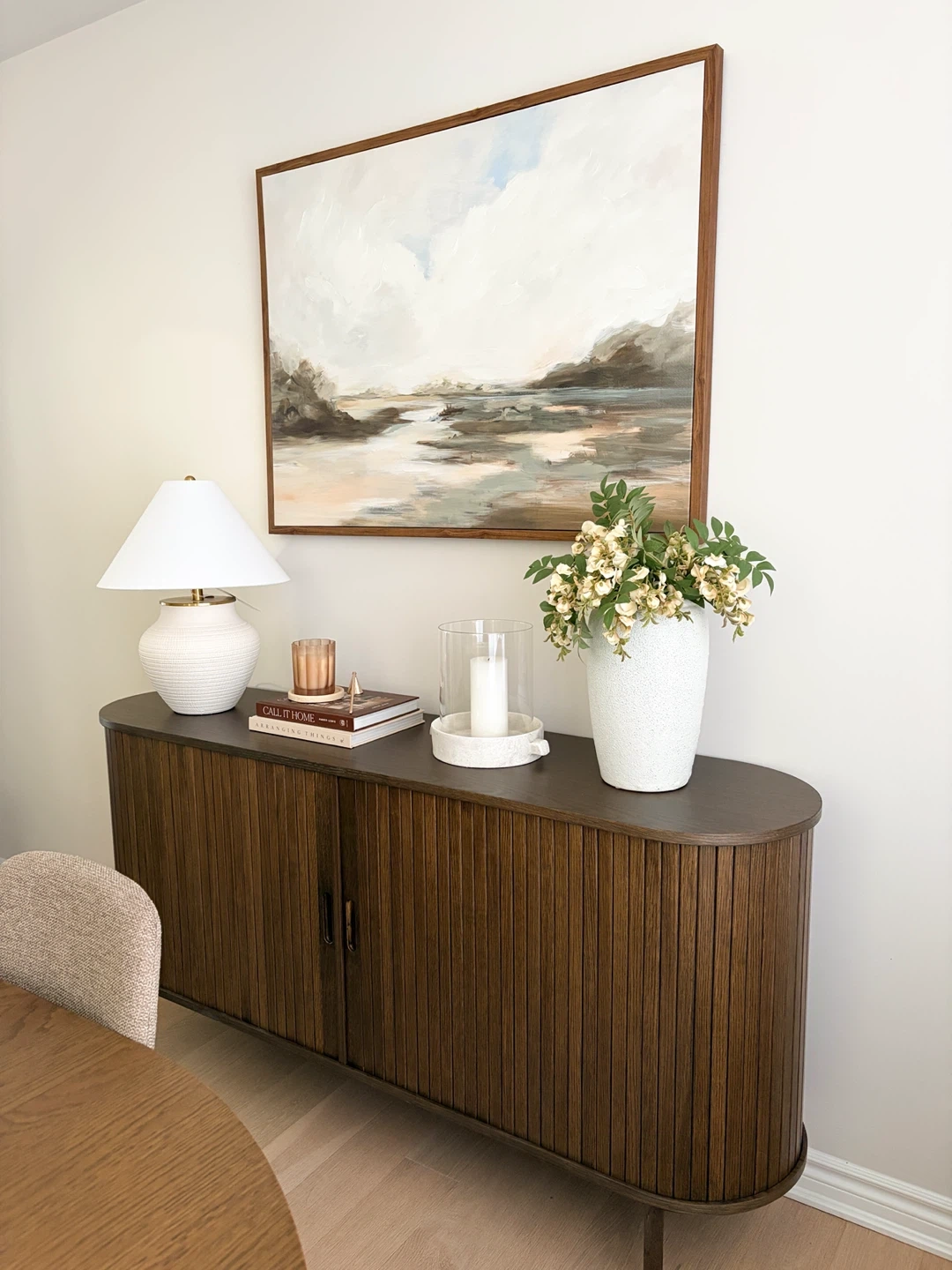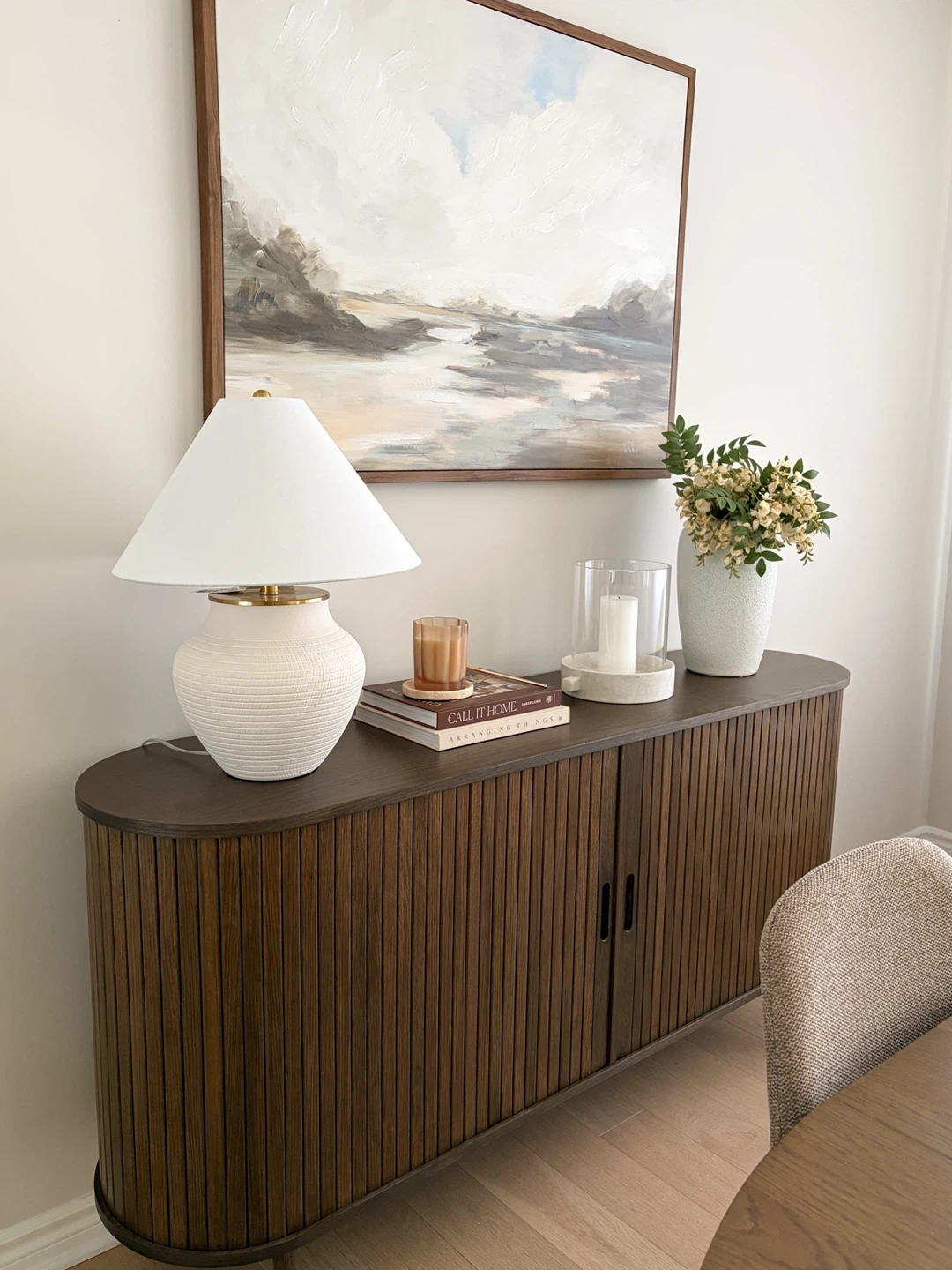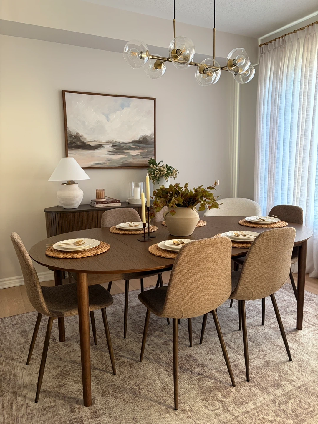 Selling a beautiful dining set that includes six an extendable dining table and 6 chairs and a matching sideboard. The chairs are a neutral/beige colour and the sideboard has a lovely ribbed design. This set would be a great addition to any dining room! *used for staging purposes only! Asking for $1,500 for the entire set. Pieces can be sold separately.