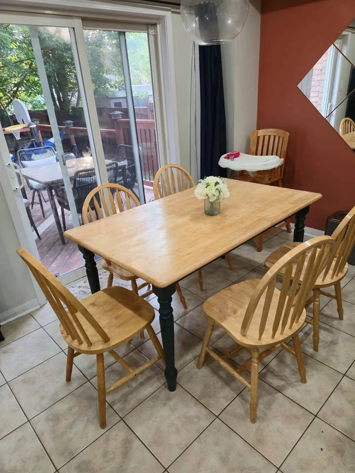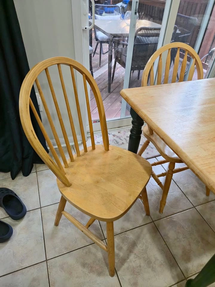 Solid Wood Dining Table + 5 Chairs – Excellent Condition Selling a beautiful all-wood dining table with five matching chairs. ✅ Material: 100% solid wood – strong, durable, and built to last. ✅ Condition: Used but in amazing shape – sturdy, clean, and well-maintained. ✅ Perfect for: Family meals, hosting guests, or adding a timeless touch to your dining space. 📦 Ready for immediate pickup