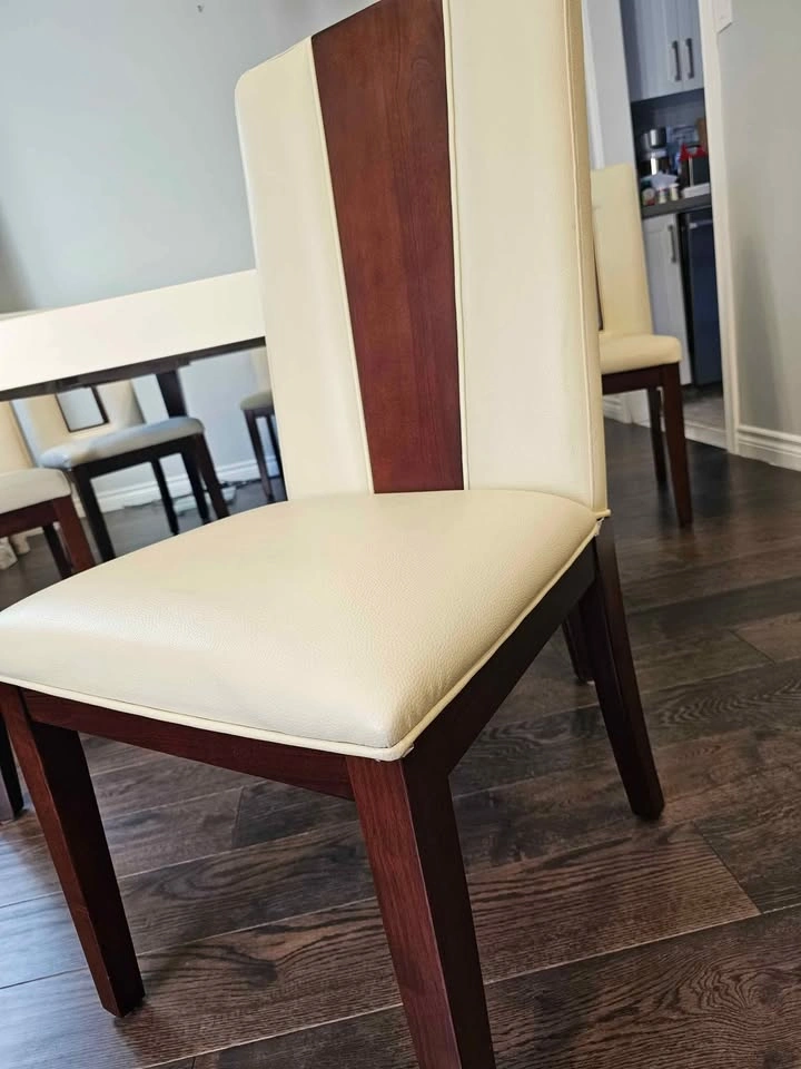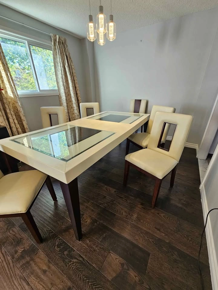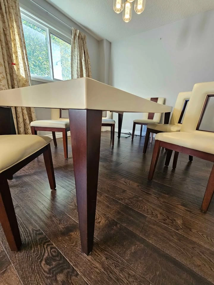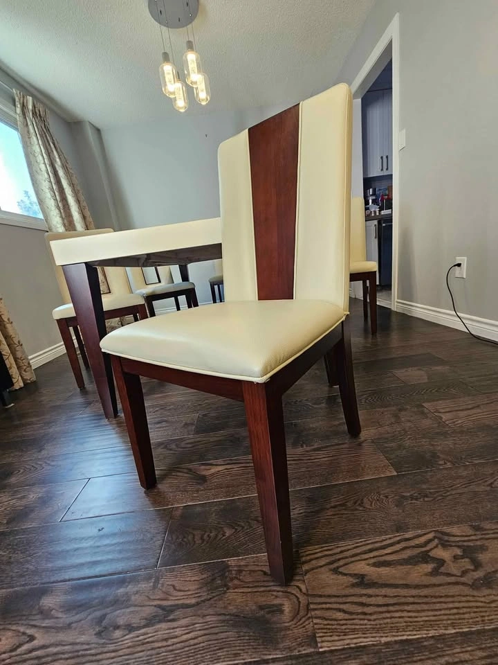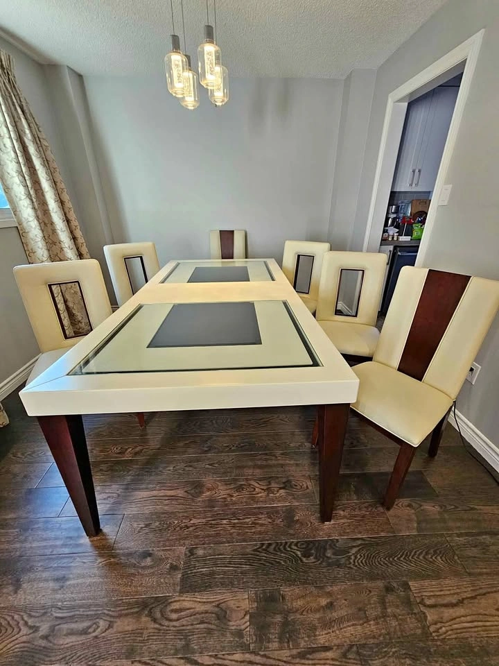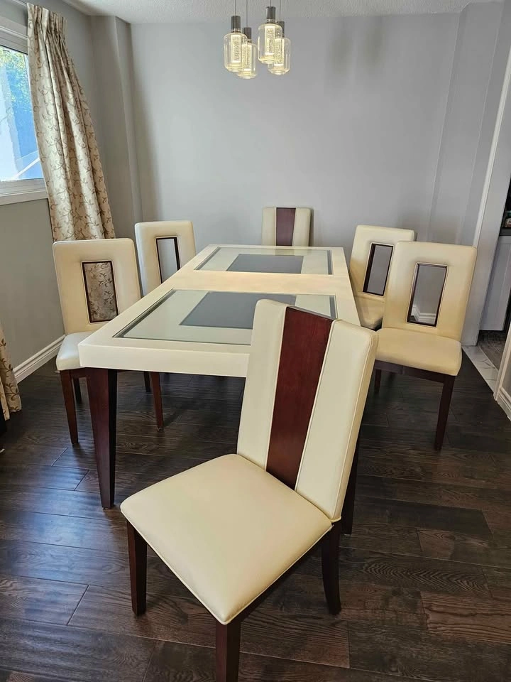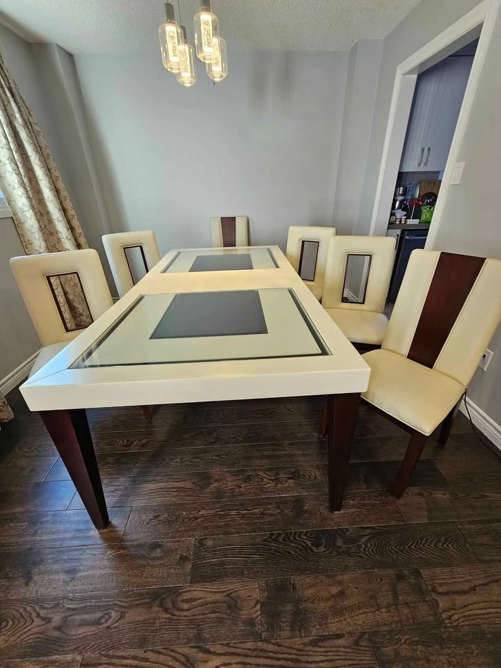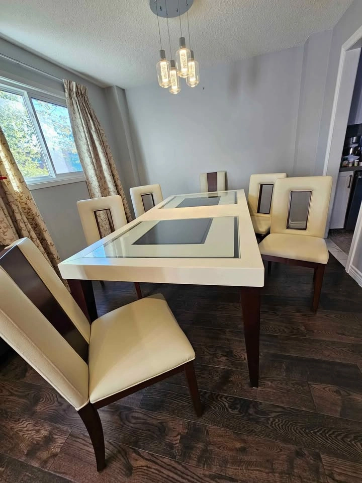 Dining Table 6 person extendable to 8 + 6 leather chairs